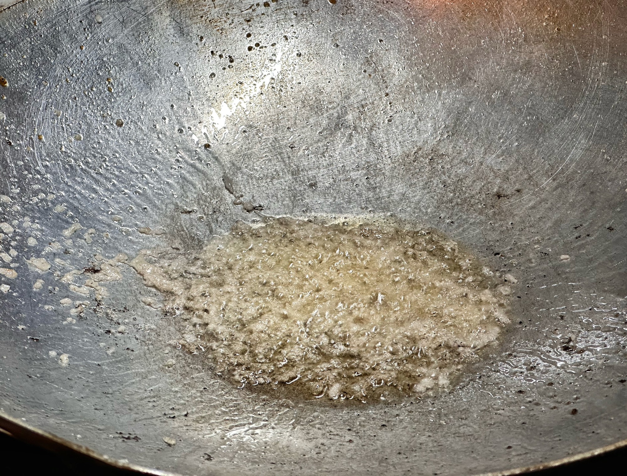 Món ăn này có thao tác khá đơn giản. Những con hàu sữa béo ngậy được ông Cường cho vào một cái bát nhỏ, đập thêm 2 quả trứng gà, nêm gia vị, hành lá thái nhỏ rồi đánh đều. Cho một chút dầu vào chiếc chảo lõm, ông dùng vá múc bột vẩy khắp chảo tạo thành một cái rế bằng bột giòn rụm, vàng ươm.