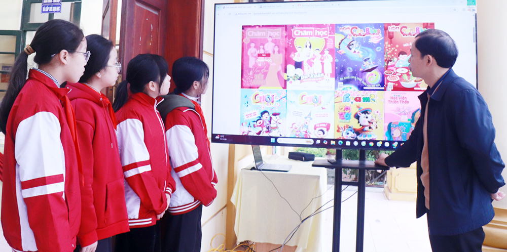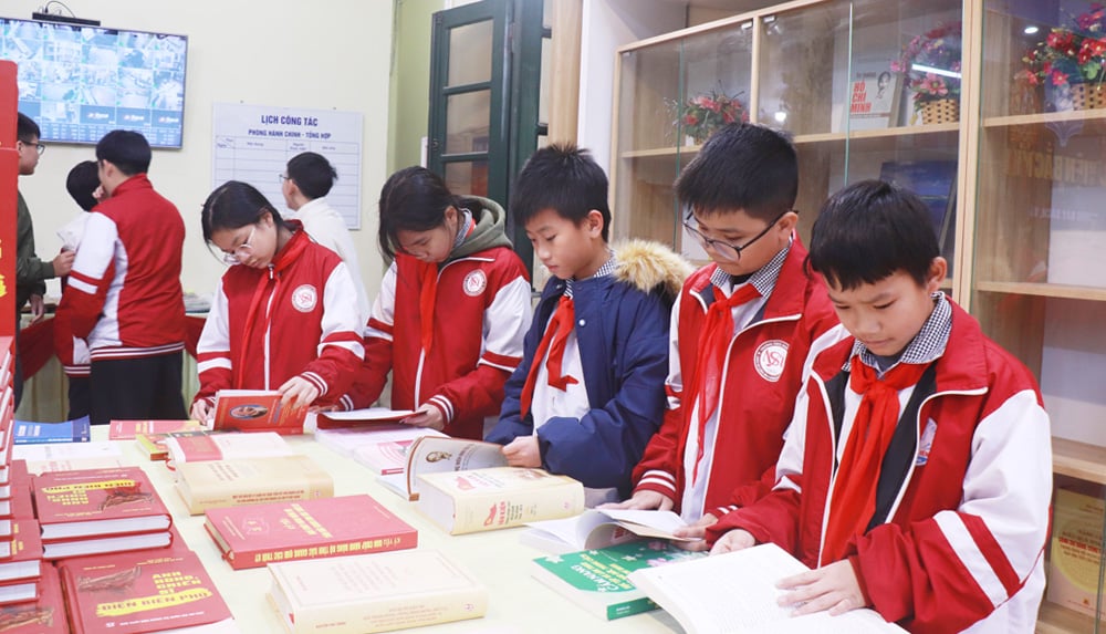 هنا، زار المندوبون والطلاب جناح المعرض الذي ضمّ أكثر من 600 كتاب ونحو 100 صحيفة ومجلة ومنشورات ربيعية من وكالات ووزارات وإدارات حكومية مركزية ومحليات على مستوى البلاد، بالإضافة إلى مقاطعة باك نينه. ركّز المحتوى على التعريف بتأسيس الحزب الشيوعي الفيتنامي وتاريخه المجيد الممتد على مدى 96 عامًا في قيادة الثورة؛ والإنجازات البارزة للبلاد في مجالات الاقتصاد والثقافة والمجتمع والدفاع الوطني والأمن والشؤون الخارجية خلال فترة الإصلاح؛ والدور العظيم والمساهمات الجليلة للرئيس هو تشي منه، مؤسس الحزب الشيوعي الفيتنامي ومرشده.