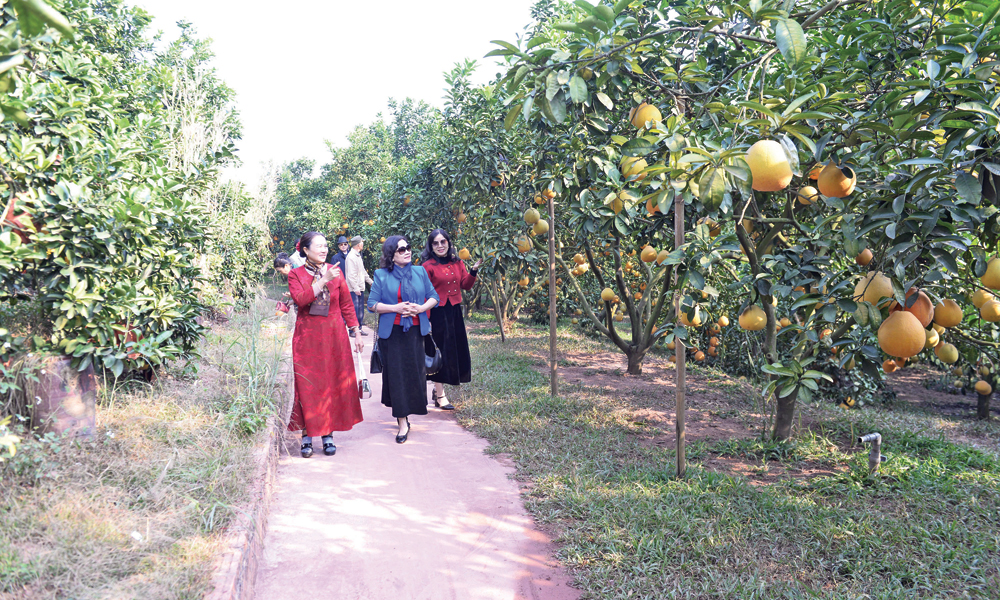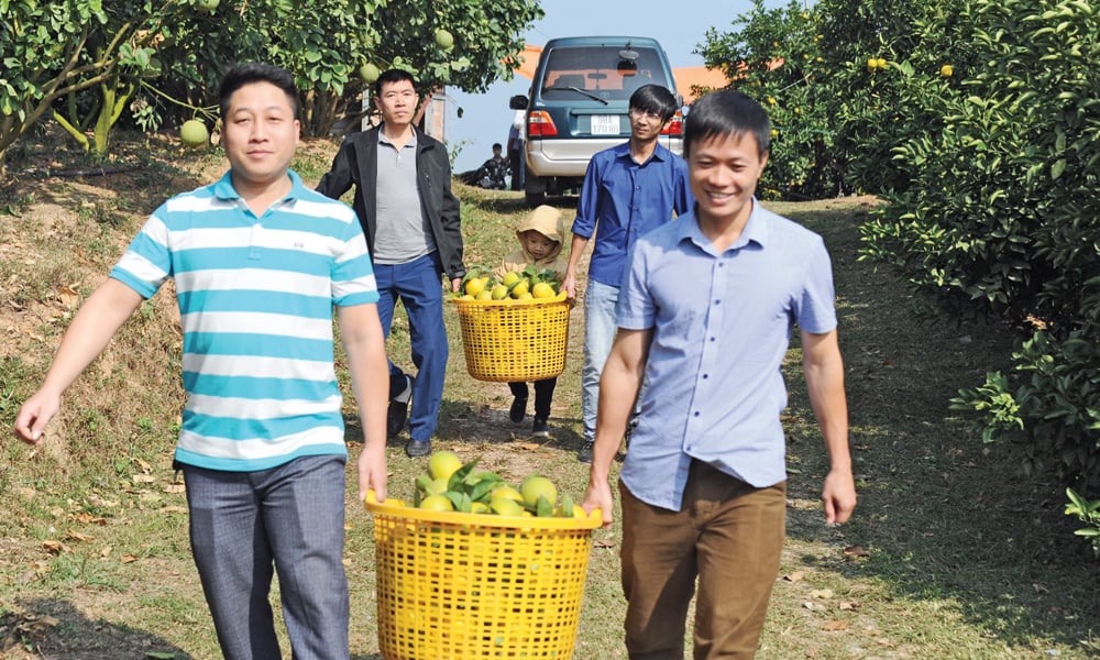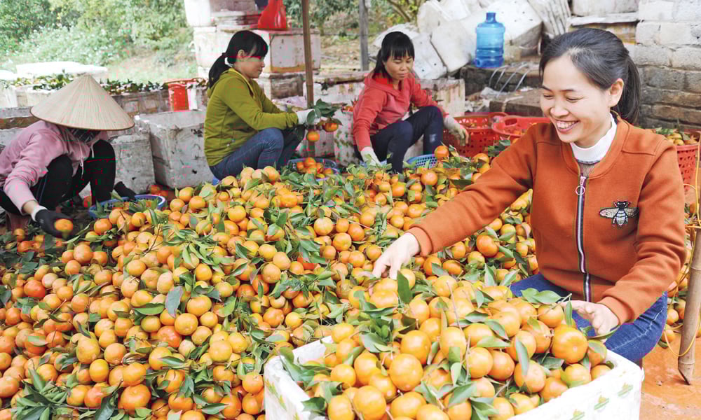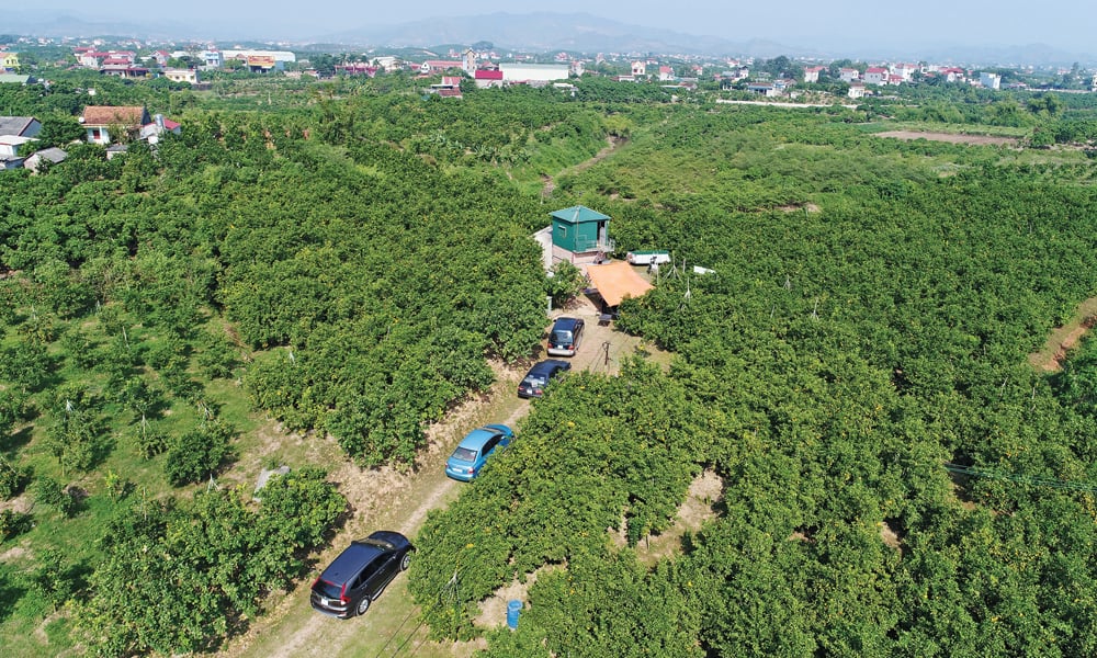 مزرعة البرتقال في قرية كاو دات، منطقة فونج سون - وجهة يختارها العديد من السياح. |