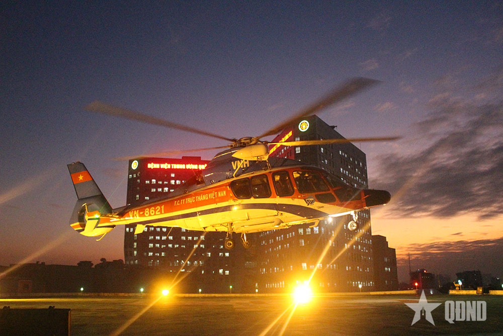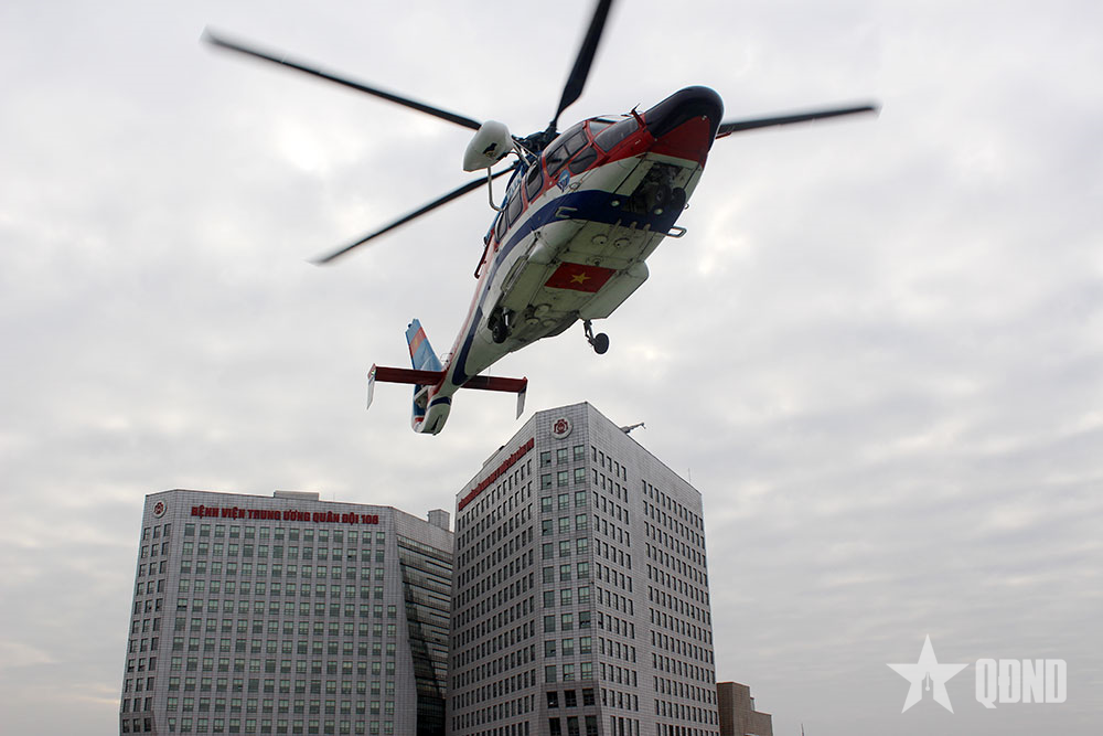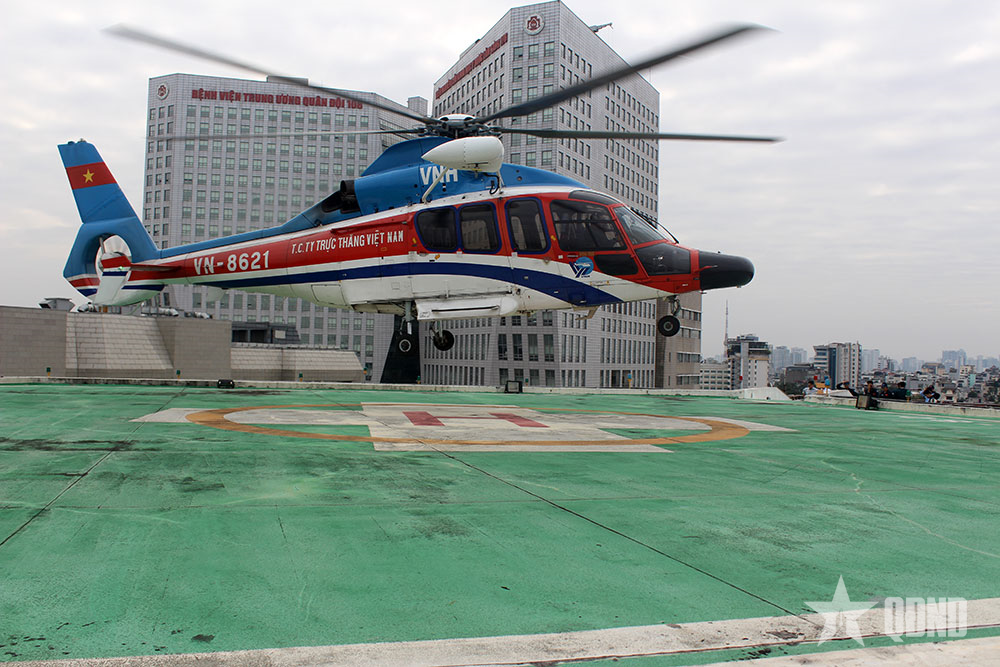 طاقم طائرة EC-155B1 يقلع ويهبط على سطح المبنى الشاهق لمستشفى 108 العسكري المركزي.
