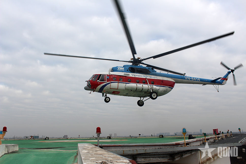طائرات هليكوبتر تدريبية تابعة لشركة المروحيات الشمالية تقلع وتهبط على سطح المبنى الشاهق لمستشفى 108 العسكري المركزي.