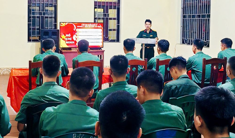 في الفوج ٢٤٦ (الفرقة ٣٤٦)، خلال المحاضرات السياسية، بدلاً من استخدام السبورة، يعمل المحاضرون مباشرةً على نظام العرض. تُصمَّم المواد المصورة والمقاطع التوضيحية، وحتى اختبارات الاختيار من متعدد، جميعها عبر الإنترنت. قال الجندي هوانغ كوانغ فينه، جندي من السرية ٢، الكتيبة ١، الفوج ٢٤٦، بحماس: "التعلم باستخدام الصور والفيديوهات المرئية يُسهِّل علينا الفهم والتذكر. عند إجراء اختبارات الاختيار من متعدد مباشرةً على الجهاز اللوحي، تظهر النتائج فورًا، ويدرك الجميع مزايا التكنولوجيا بوضوح".