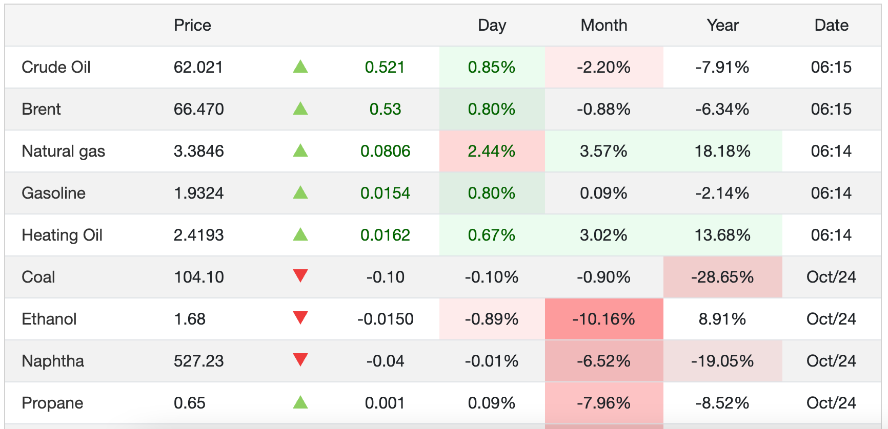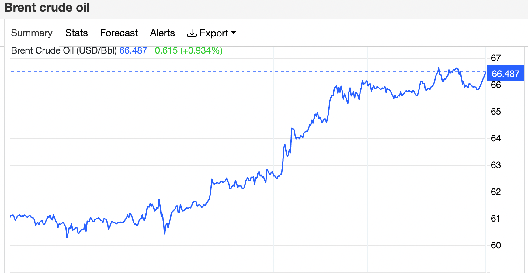 ارتفعت أسعار خام برنت إلى 66.52 دولارًا للبرميل في 26 أكتوبر، بزيادة قدرها 0.88% عن اليوم السابق، وفقًا لـ Trading Economics. وخلال الشهر الماضي، انخفضت أسعار خام برنت بنسبة 0.85%، وانخفضت بنسبة 6.31% على أساس سنوي، وفقًا لعقود الفروقات (CFDs)، وهي سوق مرجعية للسلعة.