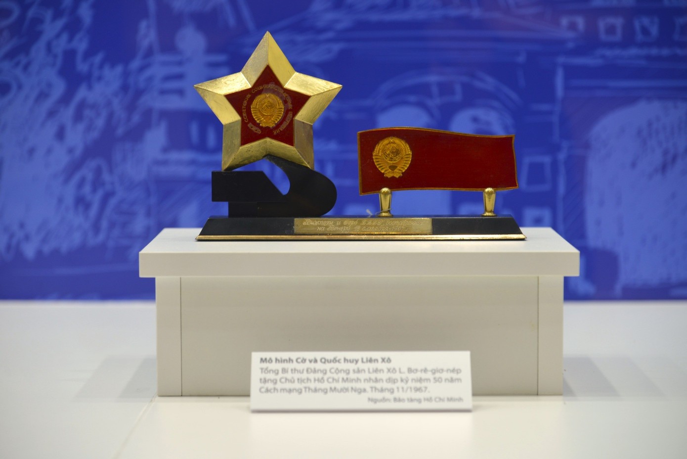 تشمل بعض الوثائق والتحف الفنية المثيرة للإعجاب مجموعة الطوابع التي أصدرتها الاتحاد السوفييتي عام 1990 احتفالاً بالذكرى المئوية لميلاد الرئيس هو تشي مينه، والوشاح الأحمر والشارات التي أهداها الأطفال السوفييت للرئيس هو تشي مينه، والقضبان الحديدية والحجارة والتربة التي أعادها الرئيس هو تشي مينه من ستالينجراد بعد زيارته عام 1957.