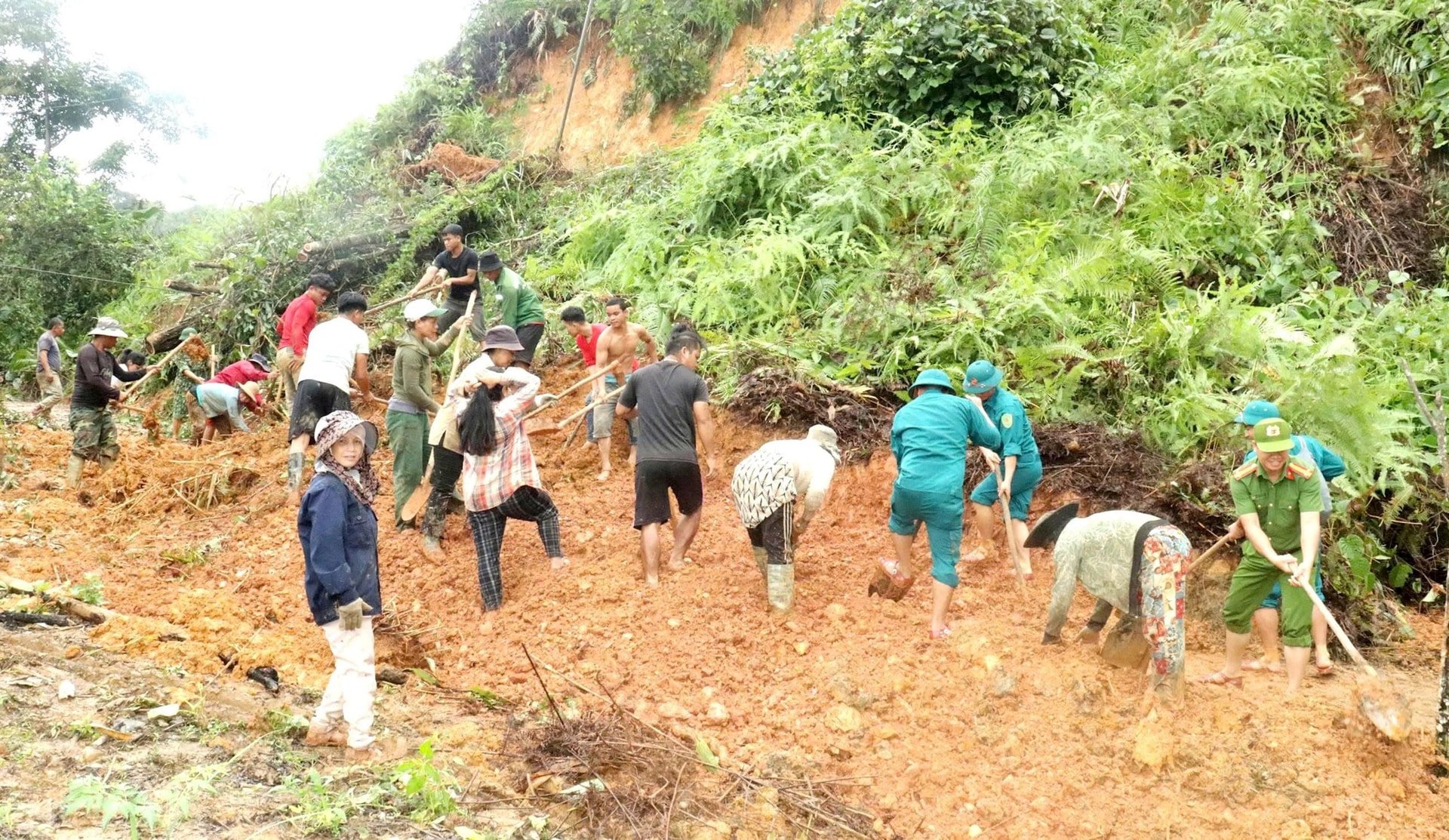 في بلدية أفونغ، ونتيجةً لتأثير الأمطار الغزيرة المستمرة، تآكل الطريق المؤدي إلى قرية أور بشكل خطير. تساقطت آلاف الأمتار المكعبة من الصخور والتربة، مما أدى إلى دفن ما يقرب من كيلومترين من الطريق، وقطع حركة الناس ونقل احتياجاتهم. ولأيام عديدة، قام الأهالي، إلى جانب الميليشيات وأعضاء اتحاد الشباب وشرطة البلدية، بتسوية الصخور والتربة، وإزالة الأشجار المتساقطة، وتصريف مياه السيول. تبرعت العائلات التي تحمل المعاول بالمعاول، والمجارف بالمجارف؛ وتبرع أصحاب الجرارات بمركباتهم، وأصحاب المناشير الكهربائية بمنشاراتهم الكهربائية. تقاسم الجميع أمنية واحدة: ألا تبقى قرية أور معزولة ليوم آخر.