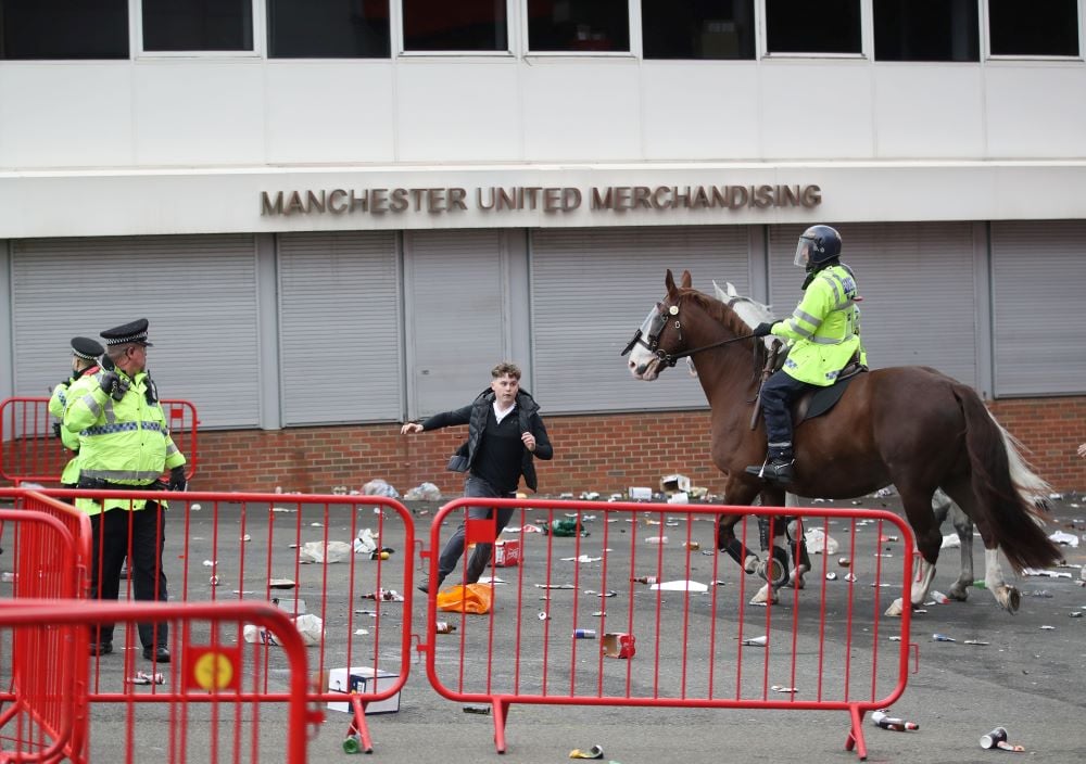 اقتحم مئات المشجعين الملعب قبل ساعات من مباراة الجولة 34 من الدوري الإنجليزي الممتاز بين مانشستر يونايتد وليفربول. وأبدى مشجعو "الشياطين الحمر" احتجاجهم الشرس على ملكية عائلة جليزر للنادي، وعلى خطة الانضمام إلى بطولة دوري السوبر الأوروبي المنفصلة.