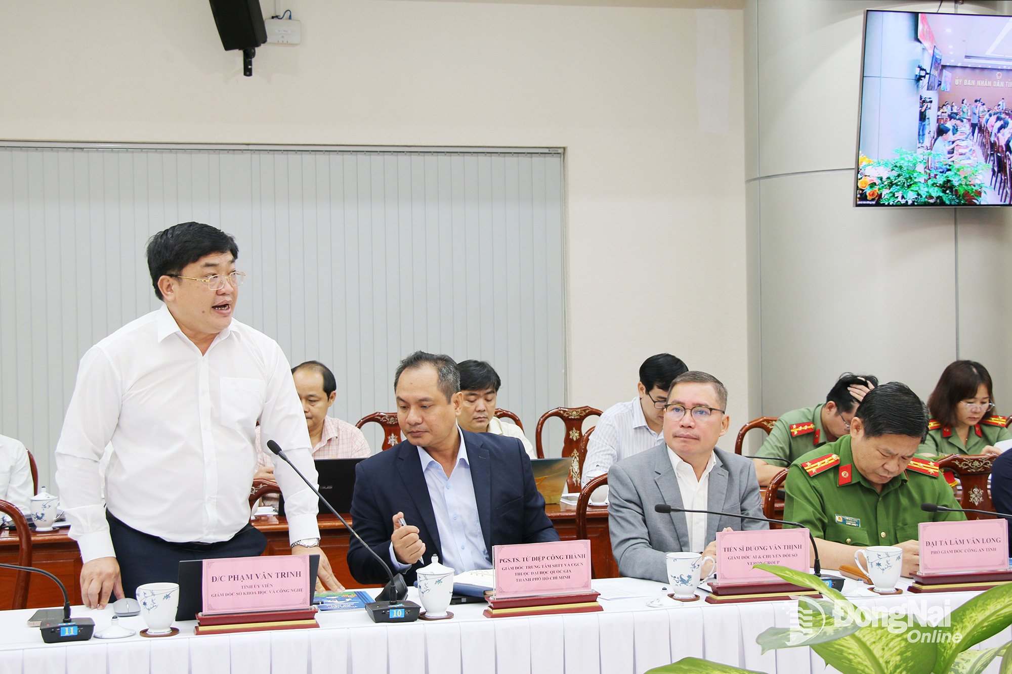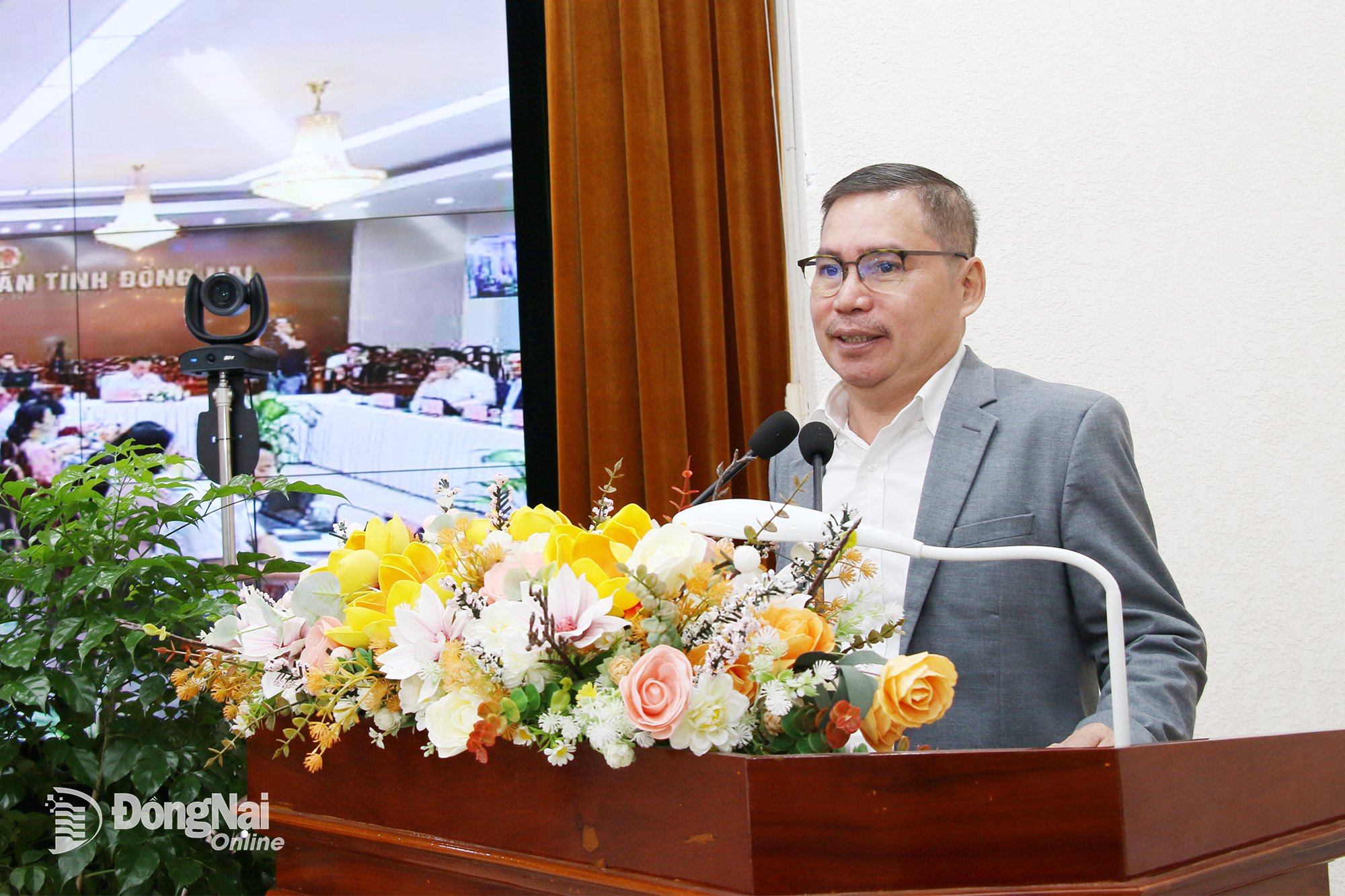| نائب مدير إدارة العلوم والتكنولوجيا في مقاطعة دونغ ناي، نجوين مينه كوانغ، قدّم تقريرًا عن تنفيذ القرارين 57-NQ/TW و71/NQ-CP في عام 2025؛ وتوجيهات التنفيذ في عام 2026 في المقاطعة. الصورة: هاي كوان |