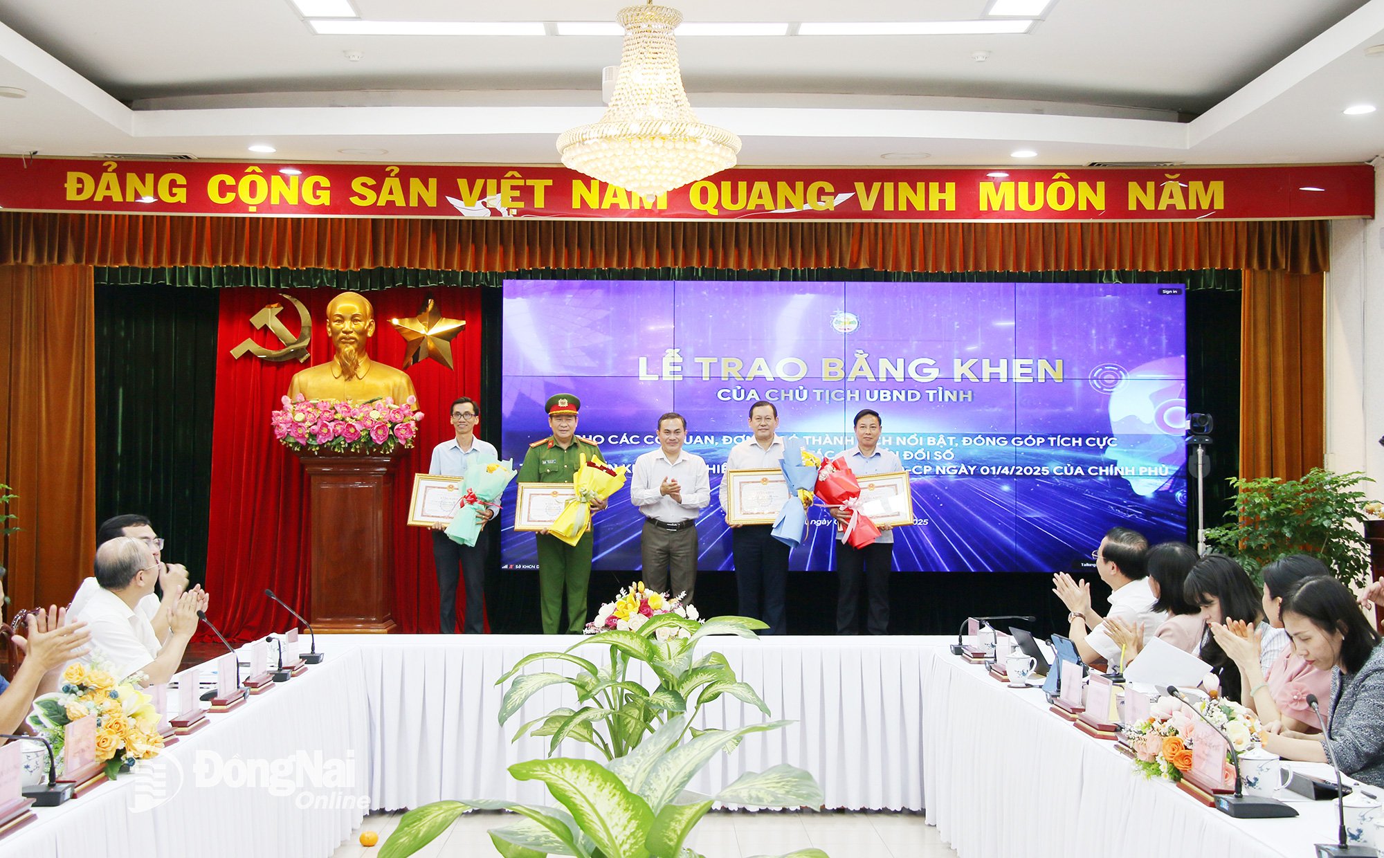 | منح لي ترونغ سون، عضو اللجنة الدائمة للحزب في المقاطعة ونائب رئيس اللجنة الشعبية لمقاطعة دونغ ناي، شهادات تقدير من اللجنة الشعبية للمقاطعة للوكالات والوحدات التي حققت إنجازات بارزة وساهمت بشكل إيجابي في التحول الرقمي في تنفيذ القرار الحكومي رقم 71/NQ-CP في المقاطعة. تصوير: هاي كوان |