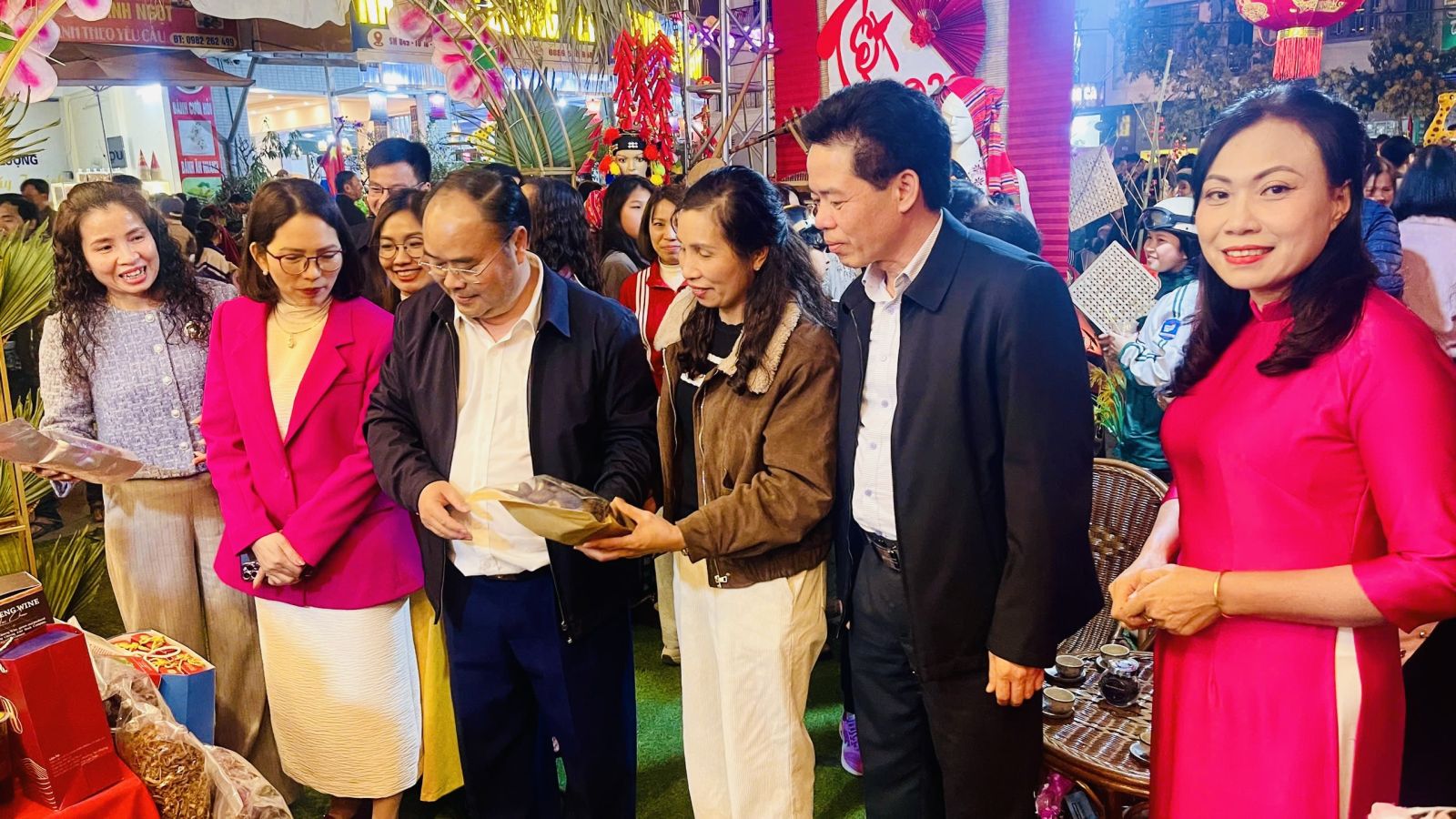 صباح اليوم، استمتع السكان المحليون والسياح بأجواء ثقافية نابضة بالحياة، حيث عرضت 13 كشكًا مزينة بألوان زاهية من مدارس مختلفة منتجات العلوم والتكنولوجيا والهندسة والرياضيات، بالإضافة إلى منتجات محلية مميزة. كما أتيحت للزوار فرصة التعرف على تقليد طلب الخط الفيتنامي المبارك في قسم "فن الخط الفيتنامي"، وزيارة أكشاك تروج لمنتجات محلية نموذجية من مبادرة "منتج واحد لكل منطقة".