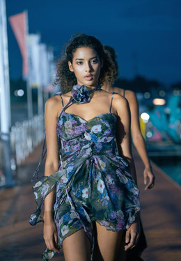يستخدم المصمم خامات كالشيفون والحرير والدانتيل لابتكار المجموعة. تتنوع أشكال الأزياء، من الشقوق والفتحات إلى القمصان القصيرة والقمصان بدون أكمام والفساتين الطويلة. تضفي التفاصيل المتعددة الطبقات والمكشكشة والواسعة على الأكمام والخصر لمسة أنثوية. وتضفي الزخارف الزهرية المطبوعة على القماش لمسة أنثوية رقيقة.