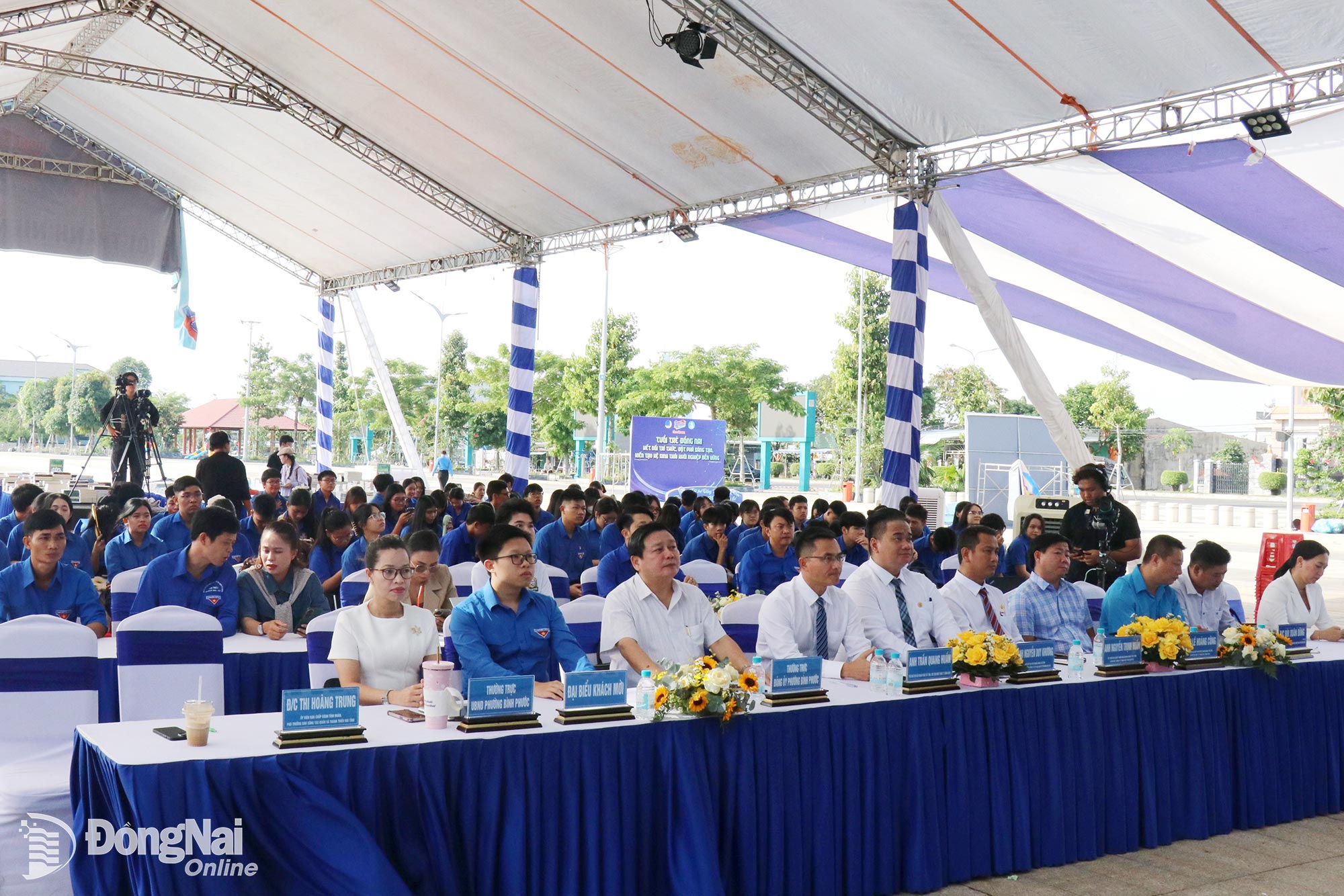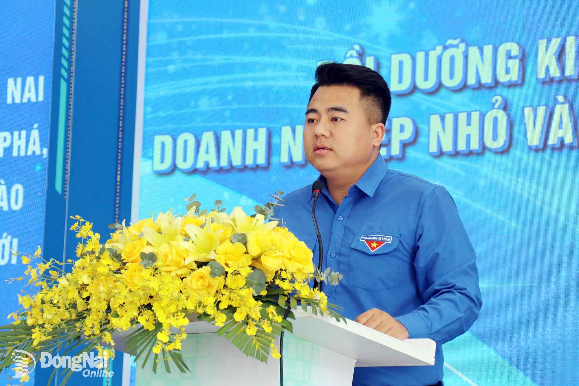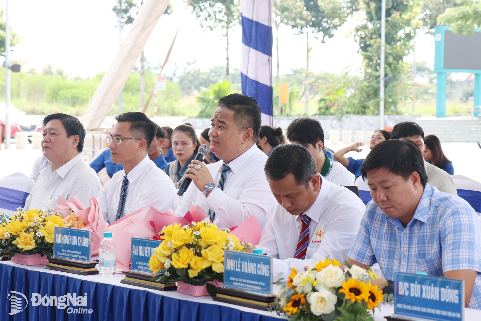 | ألقى السيد ثي هوانغ ترونغ، نائب رئيس اتحاد شباب فيتنام في مقاطعة دونغ ناي، ونائب رئيس اتحاد الشباب وإدارة شؤون الأطفال في مقاطعة دونغ ناي ، كلمةً في البرنامج. تصوير: نغوك ثوان |