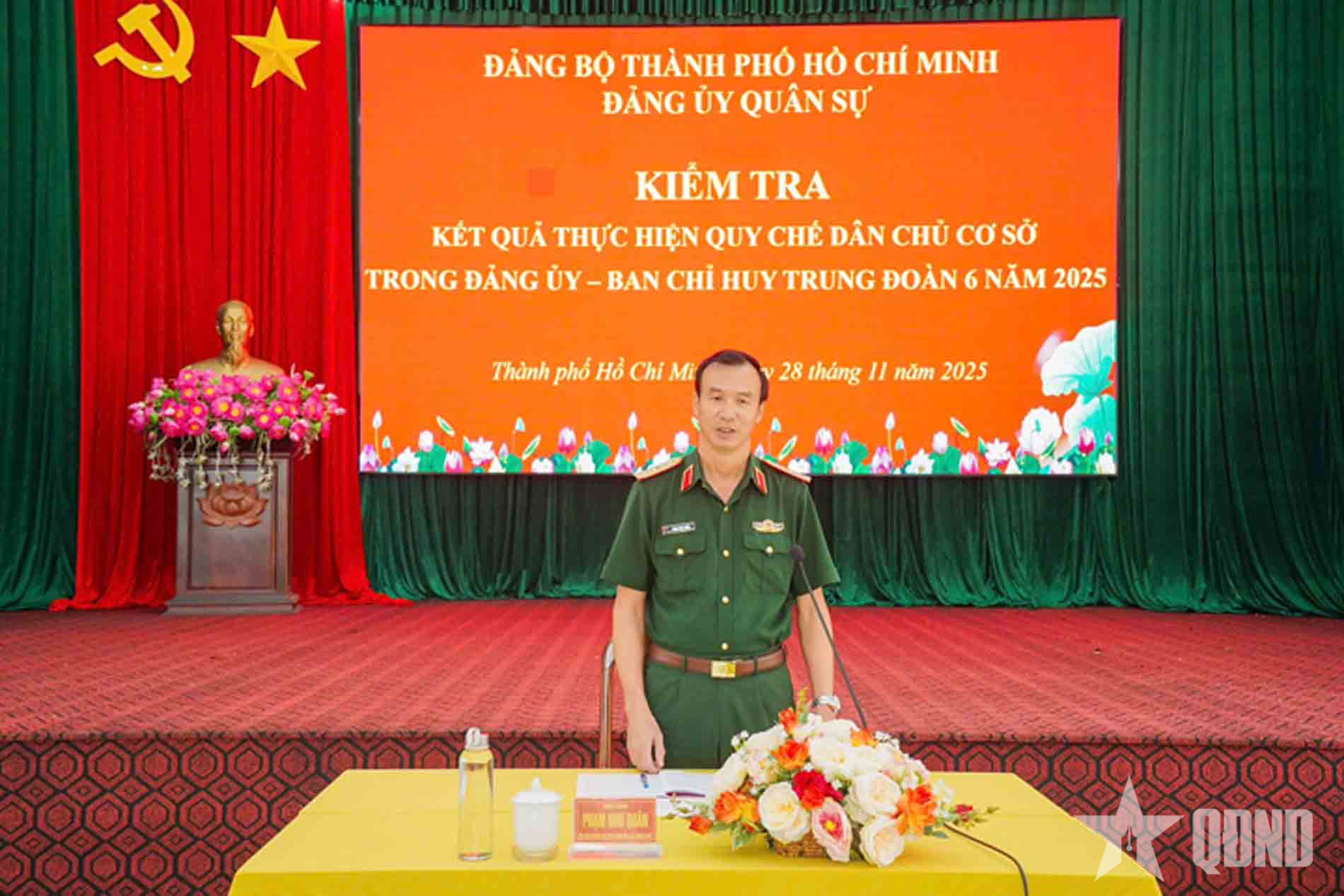 منذ بداية عام 2025، استوعب الفوج السادس (قيادة مدينة هوشي منه ) بشكل كامل ونفذ بشكل فعال لوائح الديمقراطية الشعبية؛ ونفذ الديمقراطية بشكل جيد في قيادة لجنة الحزب وخلايا الحزب؛ وعزز مسؤولية القيادة؛ وحسن جودة أنشطة المجلس العسكري والمنظمات الجماهيرية.