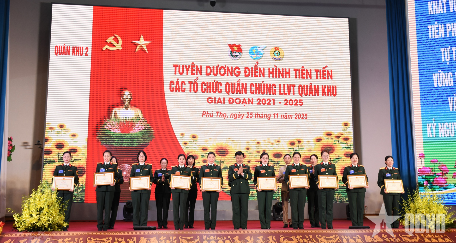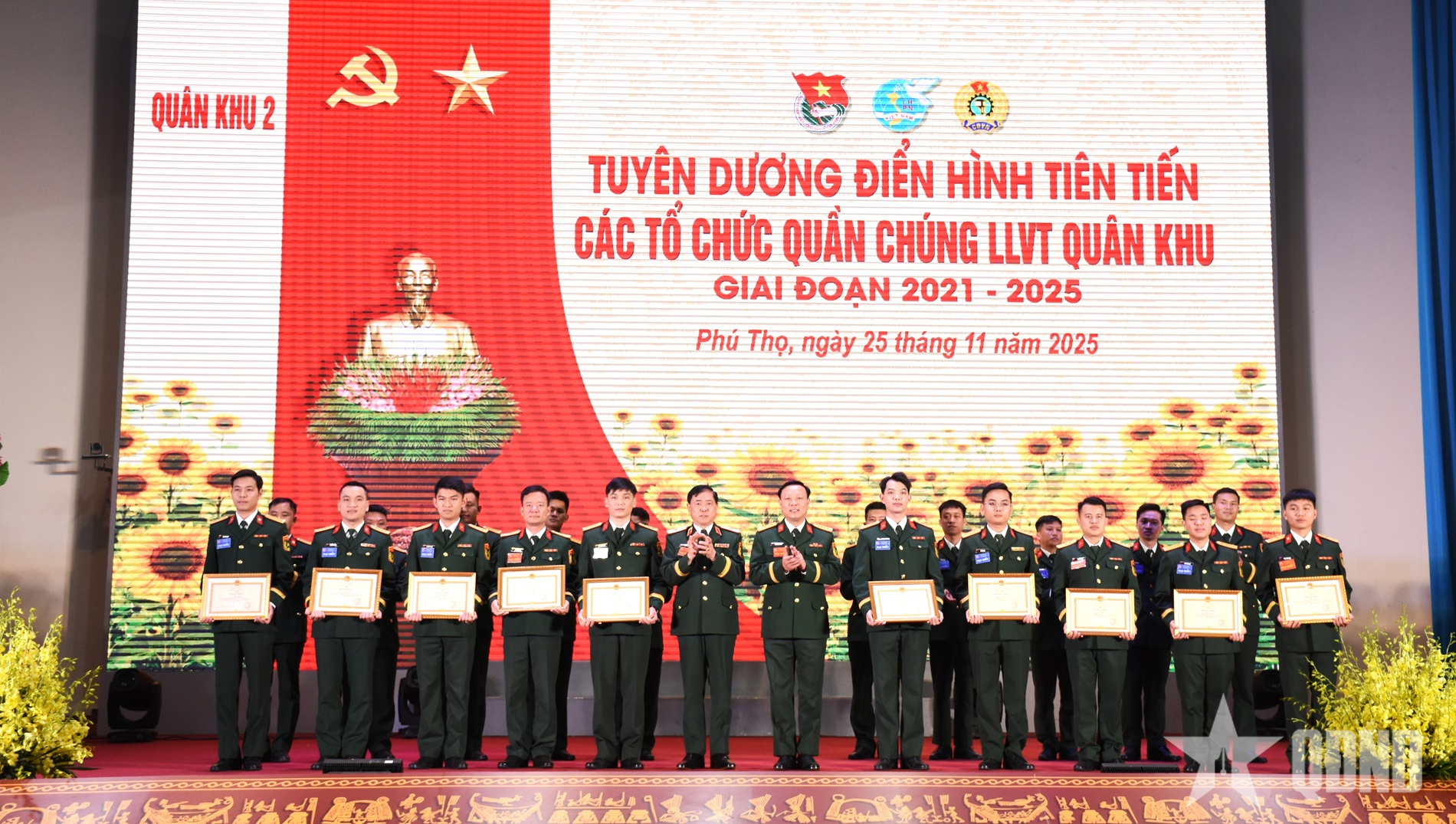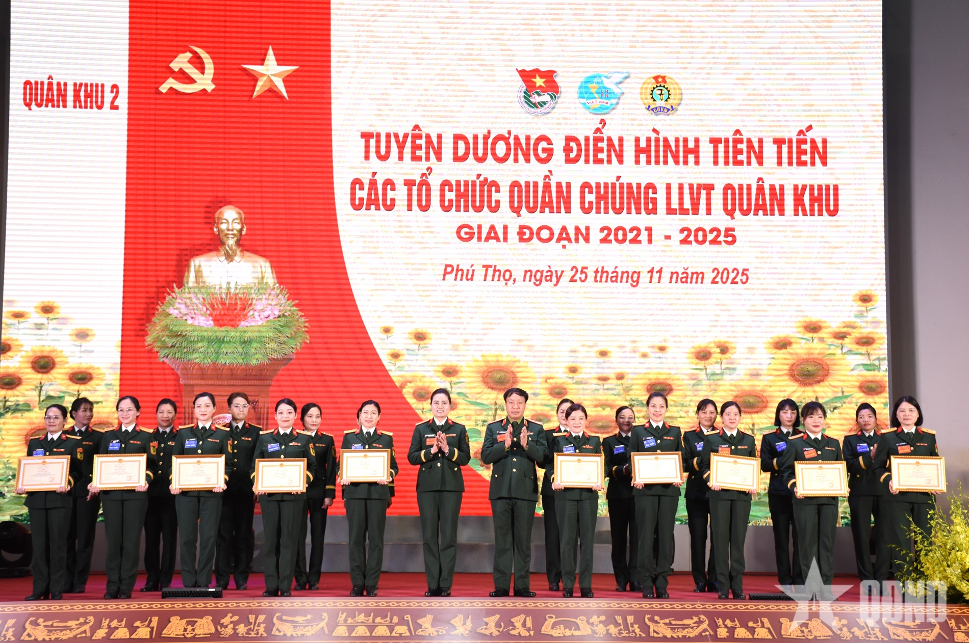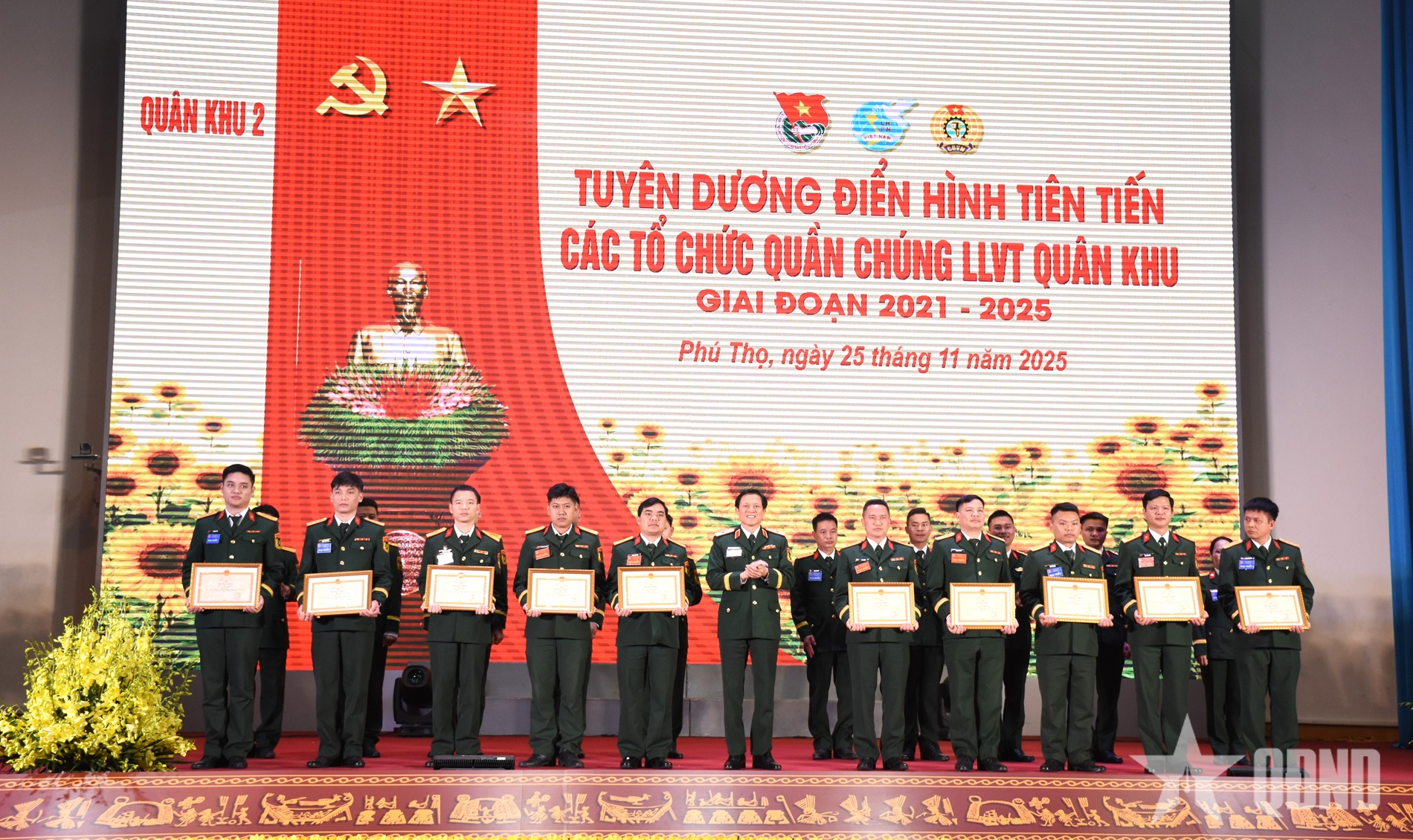 تكريم المجموعات ذات الإنجازات المتميزة في تنظيم وتنفيذ أنشطة العمل الجماهيري للمنطقة العسكرية الثانية للفترة 2021-2025. |