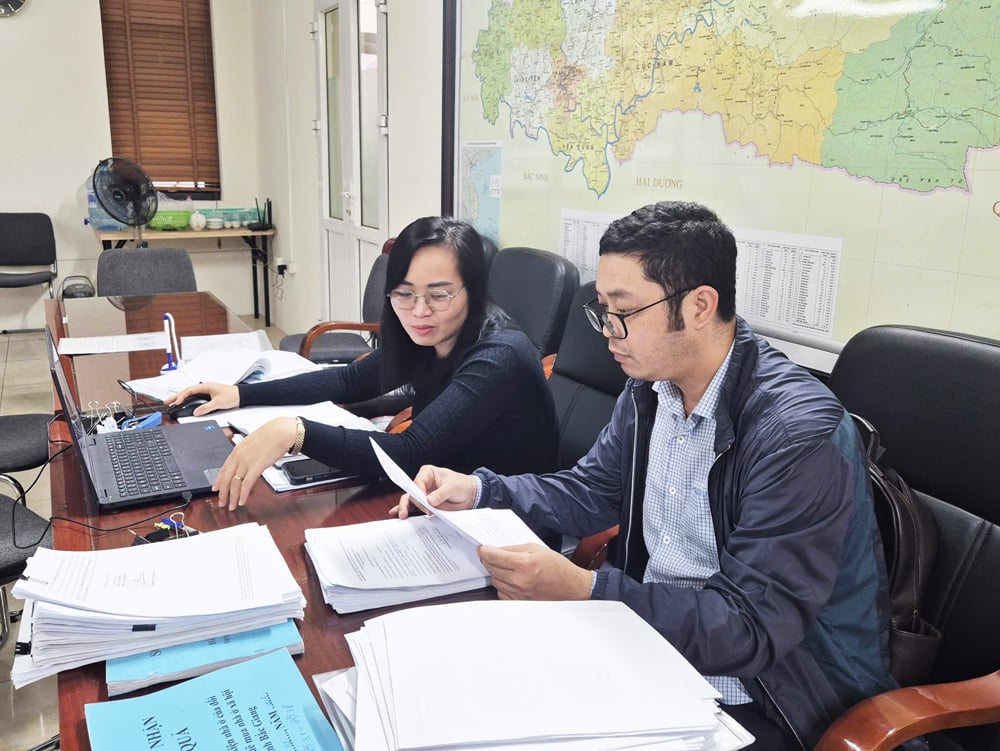 Cán bộ Văn phòng đăng ký đất đai Bắc Ninh số 1 rà soát hồ sơ đề nghị cấp chứng nhận đất đai để mua nhà ở xã hội. |