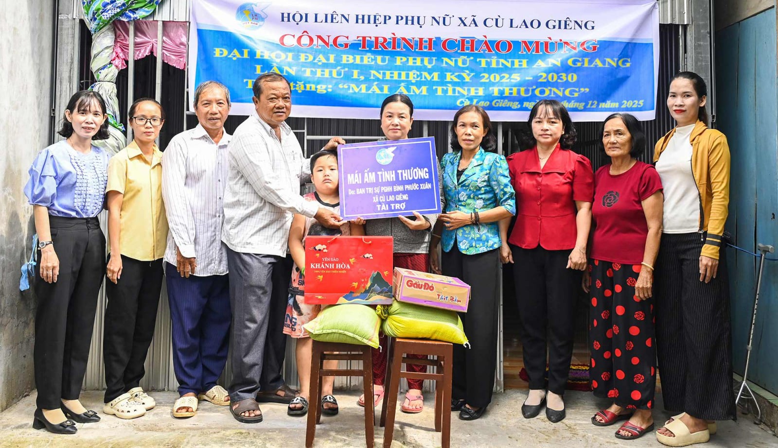 Ngày 3/12, Hội Liên hiệp Phụ nữ xã Cù Lao Giêng (tỉnh An Giang) tổ chức bàn giao 3 “Mái ấm tình thương” cho hội viên phụ nữ nghèo, khó khăn về nhà ở trên địa bàn. Đây là công trình chào mừng Đại hội đại biểu phụ nữ tỉnh An Giang lần I, nhiệm kỳ 2025 - 2030.