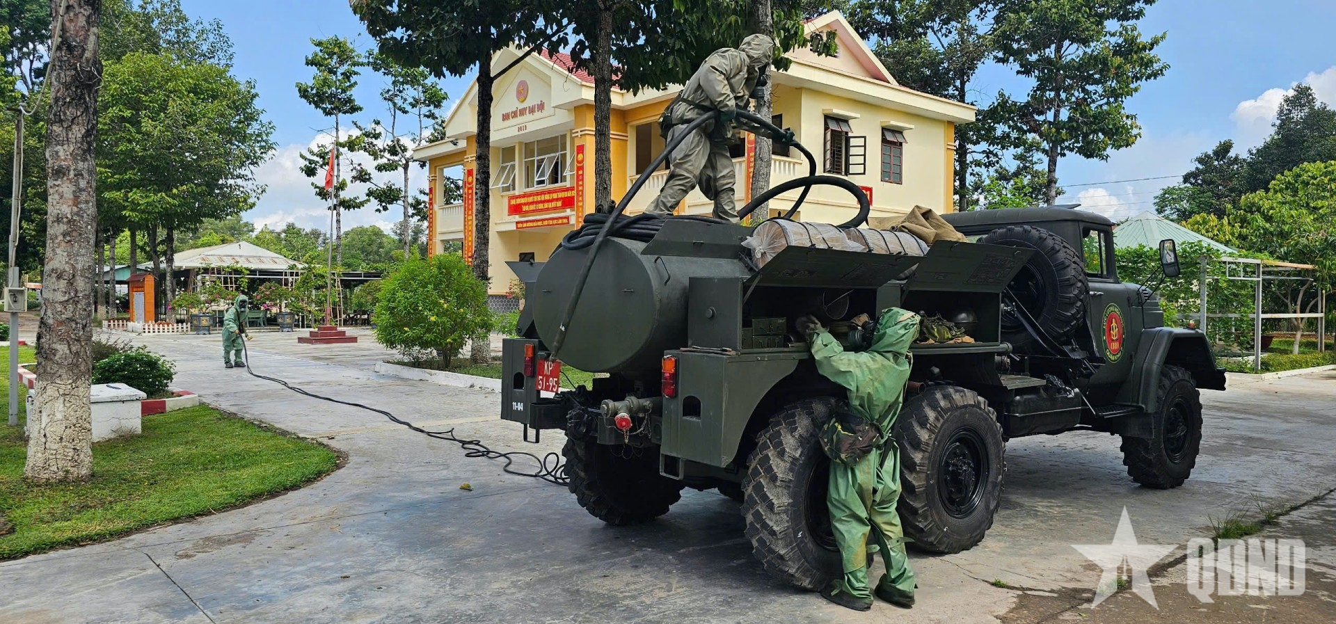 | Luyện tập thực hành sử dụng bộ khí tài phòng hóa OZK. |