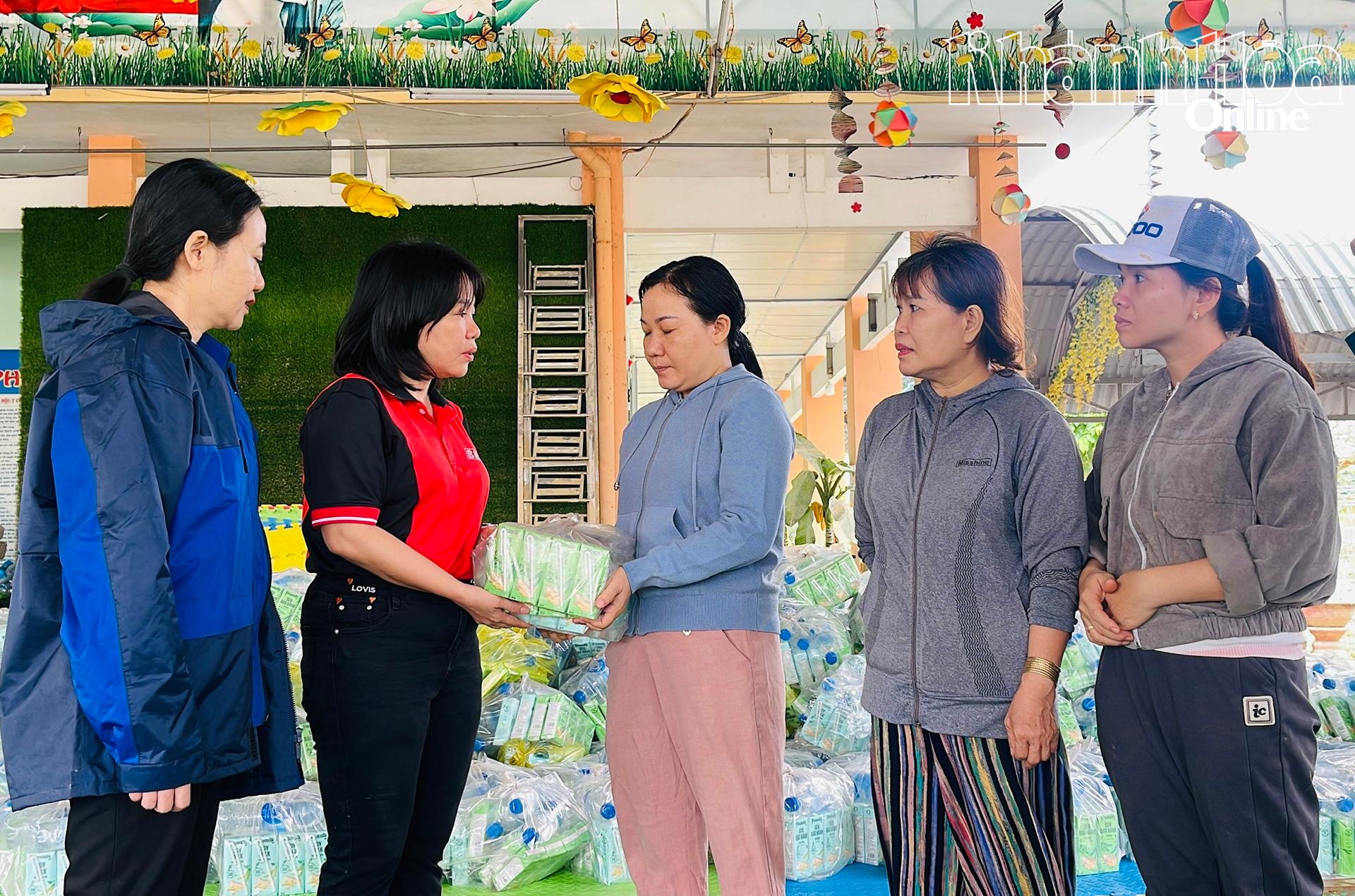 Tại xã Diên Điền, nơi bị thiệt hại nặng trong đợt lũ, Báo và Phát thanh, Truyền hình Khánh Hòa cùng Hội Liên hiệp Phụ nữ tỉnh đã trao 300 phần quà như trên cho học sinh Trường Mầm non Diên Điền.