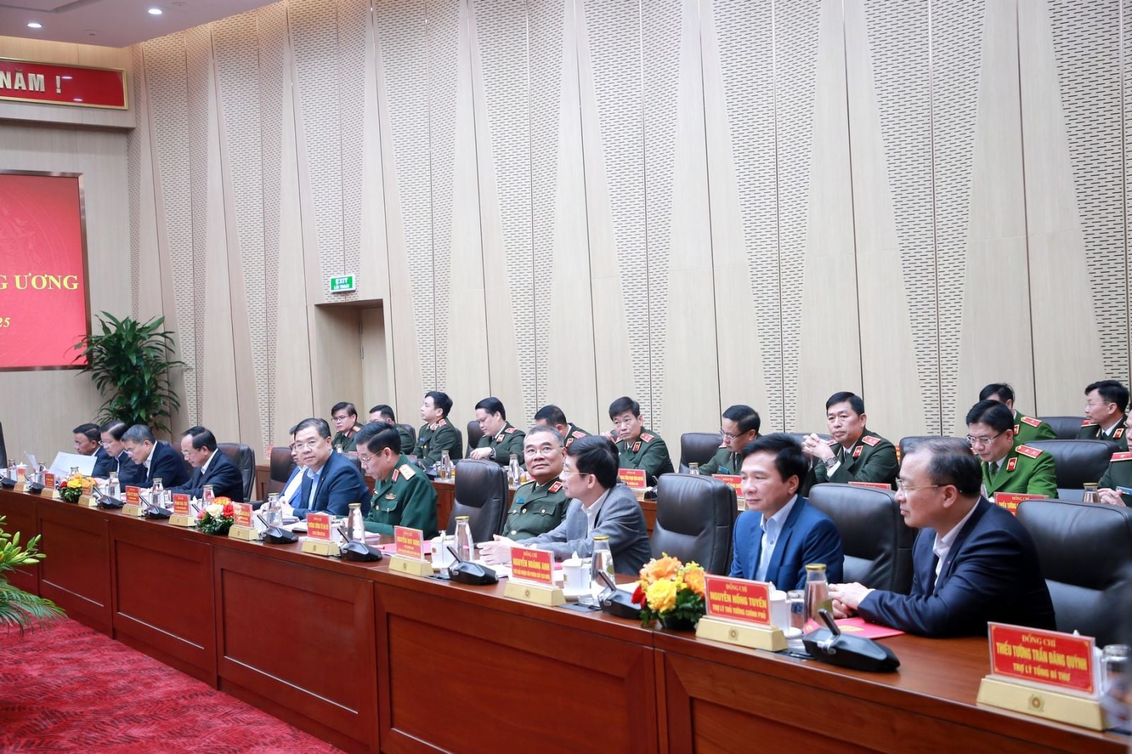 কেন্দ্রীয় জননিরাপত্তা পার্টি কমিটির পাশে, কমরেডরা ছিলেন: জেনারেল লুওং ট্যাম কোয়াং, পলিটব্যুরো সদস্য, কেন্দ্রীয় জননিরাপত্তা পার্টি কমিটির সচিব, সম্মেলনের সভাপতিত্বকারী জননিরাপত্তা মন্ত্রী; কেন্দ্রীয় জননিরাপত্তা পার্টি কমিটির কমরেডরা, জননিরাপত্তা মন্ত্রণালয়ের নেতারা...
