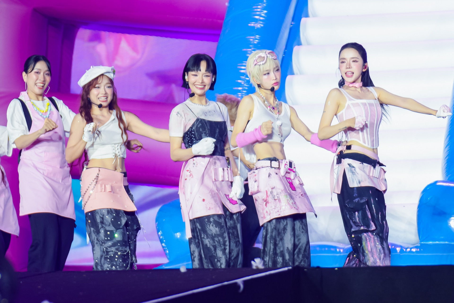 বিশেষ করে, প্রিটি গার্ল নার্সারি রাইমস, তুং, ডিউ এম লুওন মং মুওন, রান, আই উইল বি দিয়ার, নট মাই ফল্ট, ডুয়েন, এম চি লা, খং দাউ নোই মুয়া রোই - এই ৯টি পরিবেশনা একটি প্রোগ্রাম করা লিফটিং টেবিল সিস্টেমে পরিবেশিত হয়েছিল, যা "সুন্দরী মেয়েদের" ছন্দের সাথে তাল মিলিয়ে চলতে সাহায্য করেছিল।