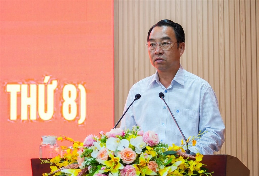 প্রাদেশিক গণ কমিটির চেয়ারম্যান লু কোয়াং এনগোই সম্মেলনে বক্তব্য রাখেন।