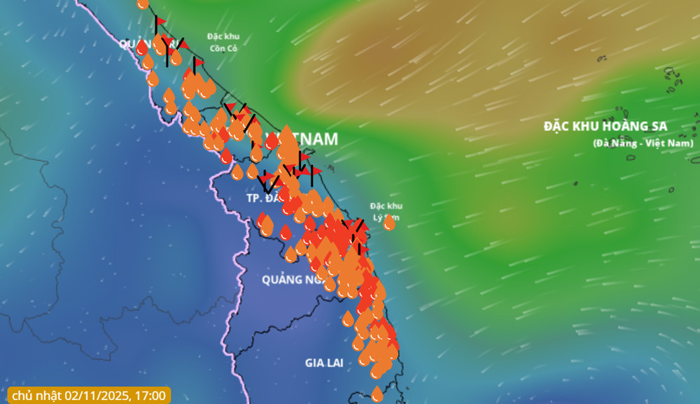 ঠান্ডা বাতাসের শক্তিশালীকরণের প্রভাব এবং উপরের পূর্বাঞ্চলীয় বায়ু অঞ্চলে ব্যাঘাতের কারণে, এনঘে আনের দক্ষিণ থেকে কোয়াং এনগাই এবং গিয়া লাই প্রদেশের পূর্বে ব্যাপকভাবে ভারী বৃষ্টিপাত অব্যাহত রয়েছে।