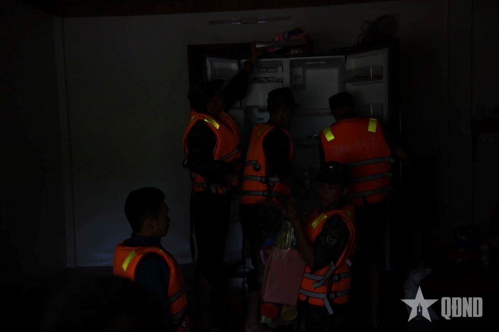 ঘন কালো রাতে, সৈন্যদের কপালের ছোট ছোট টর্চলাইটগুলি জনগণের জন্য একটি ভরসা হয়ে ওঠে। মিলিশিয়াদের নির্দেশনায়, তারা প্রতিটি দরজায় কড়া নাড়তে থাকে, সাবধানে বয়স্ক এবং শিশুদের নৌকায় উঠতে সাহায্য করে। লোকেরা নিরাপদে থাকলে, সৈন্যরা আসবাবপত্র এবং যানবাহন সরাতে সাহায্য করার জন্য ফিরে আসে। সাধারণ জিনিসপত্র থেকে শুরু করে রেফ্রিজারেটর এবং টেলিভিশনের মতো মূল্যবান জিনিসপত্র, সৈন্যরা সাবধানে তাদের যত্ন নেয় এবং শুকনো জায়গায় নিয়ে যায়।