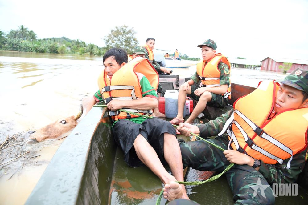 ক্যাট তিয়েন কমিউনে নগুয়েন থান বিনের বাড়িতে, ৪৫টি দুগ্ধজাত গরু কর্দমাক্ত বন্যার পানিতে আটকে ছিল। হঠাৎ বন্যার পানি পরিবারকে গরুগুলোকে আশ্রয়ে নিয়ে যেতে বাধা দেয়। রাতভর বন্যার বিরুদ্ধে দৌড়ানোর পর কৃষকের ক্লান্ত চোখ সকলের মনে দুঃখের অনুভূতি জাগিয়ে তোলে। বিন যখন এখনও ভাবছিলেন যে কী করবেন, তখন ইঞ্জিনিয়াররা ইতিমধ্যেই সেখানে ছিলেন। পরিবারের সদস্যরা প্রতিটি গরুকে বেঁধে গোলাঘরে সাঁতার কাটছিলেন, যখন সৈন্যরা উদ্ধারকারী নৌকার মাধ্যমে গরুগুলোকে গভীর জল থেকে আলতো করে বের করে আনছিল। একে একে, ৪৫টি গরুকে নিরাপদে আনা হয়েছিল।