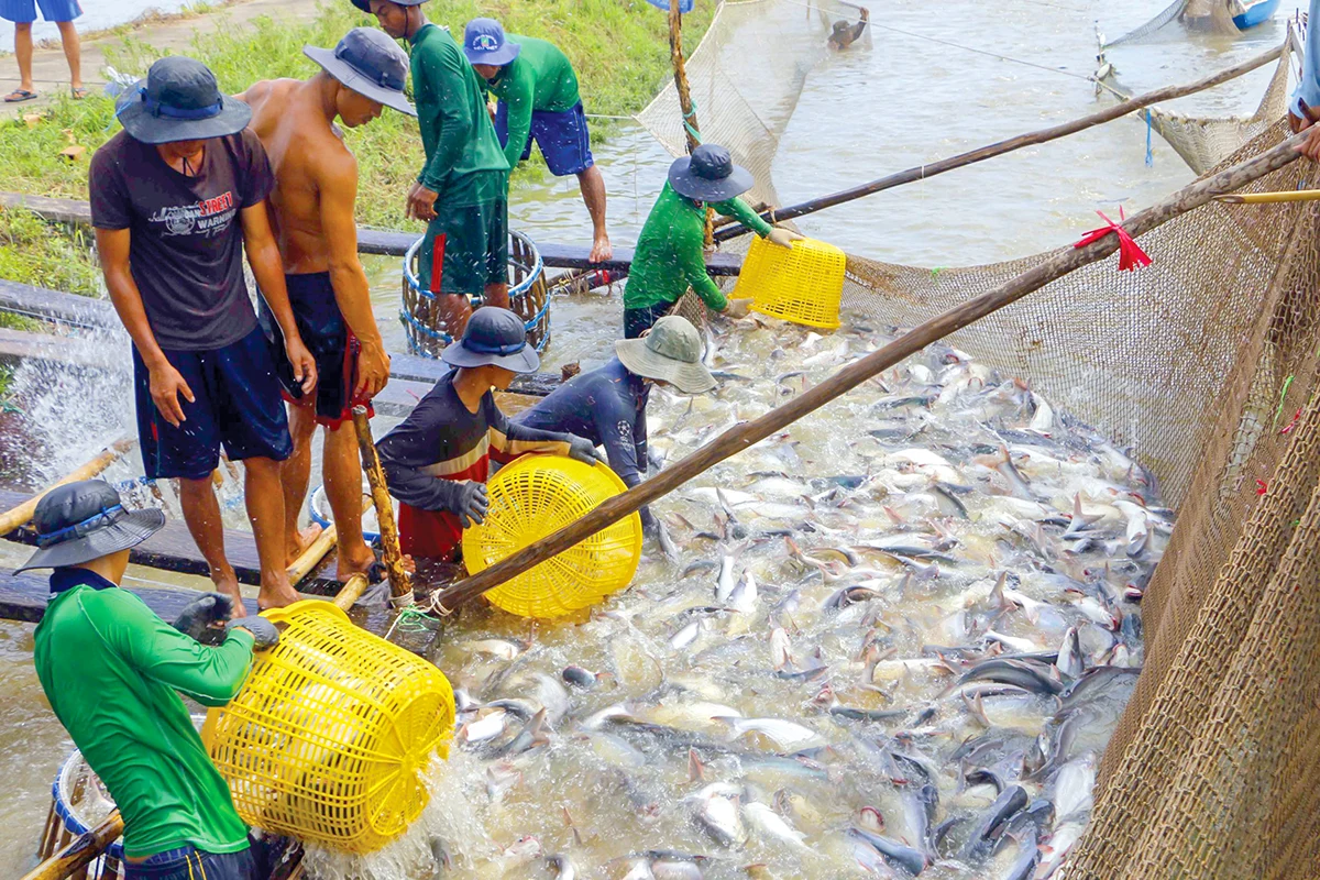 ক্যান থো শহরের ট্যান লোক ওয়ার্ডে পাঙ্গাসিয়াস মাছের পুকুর থেকে মাছ ধরা হয়।