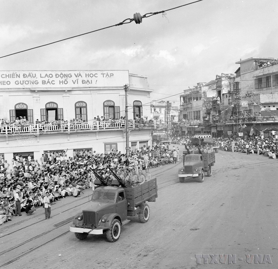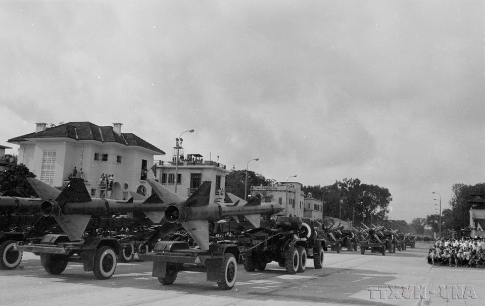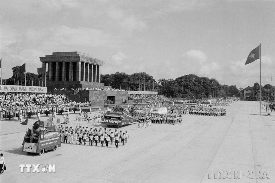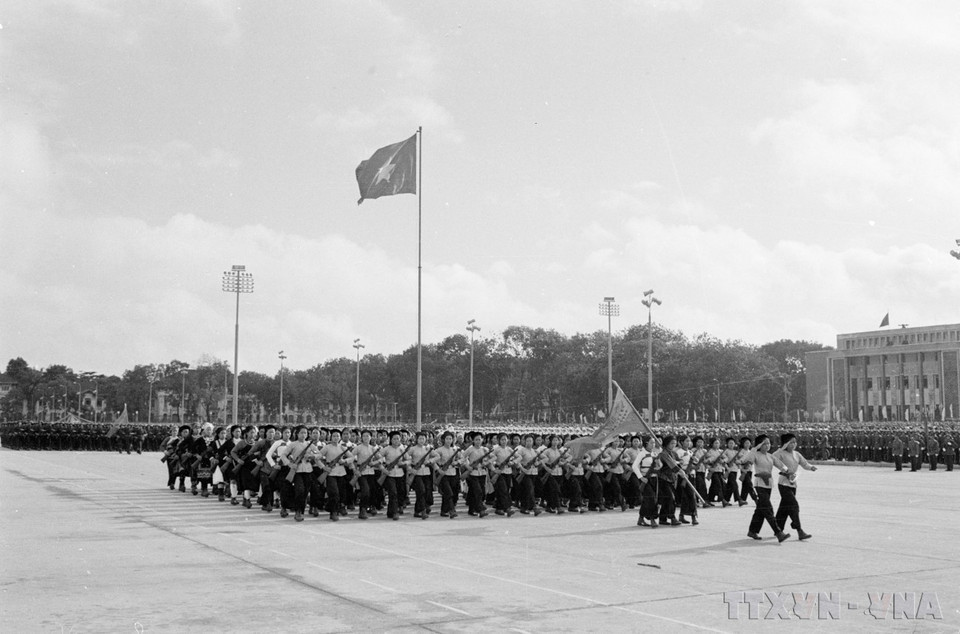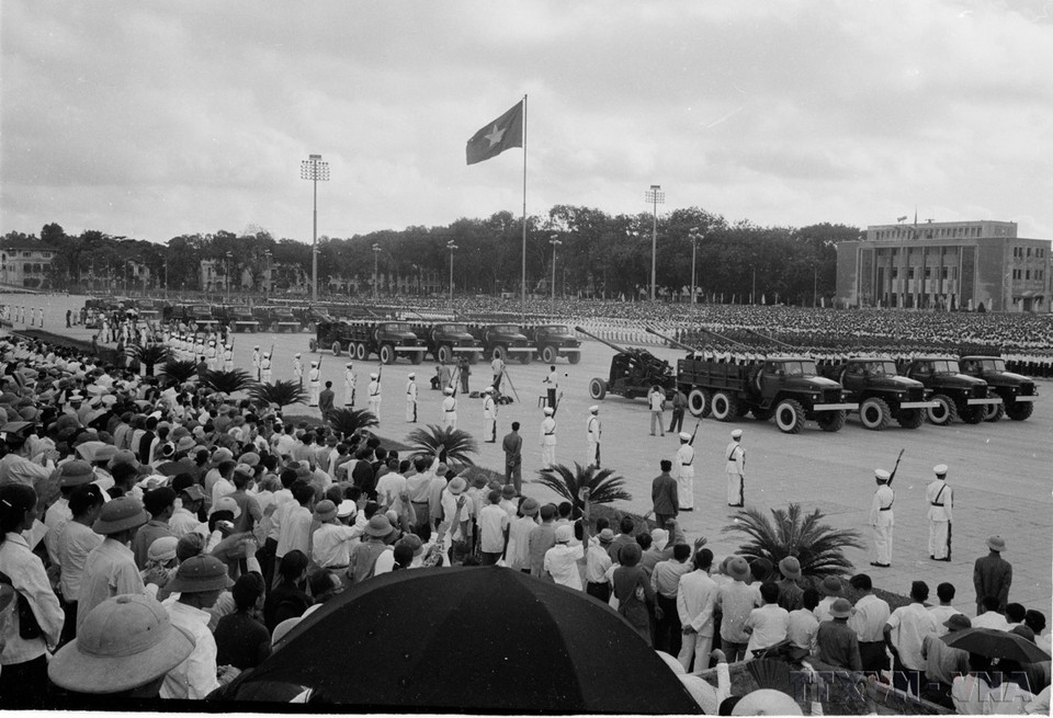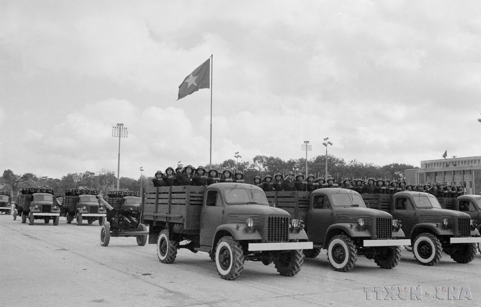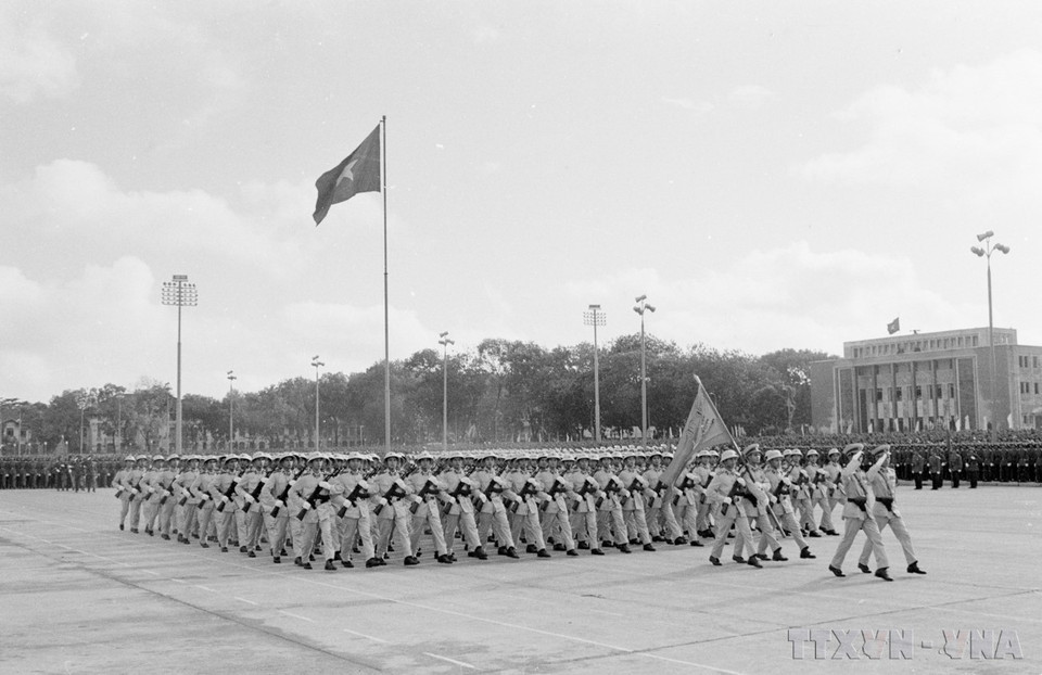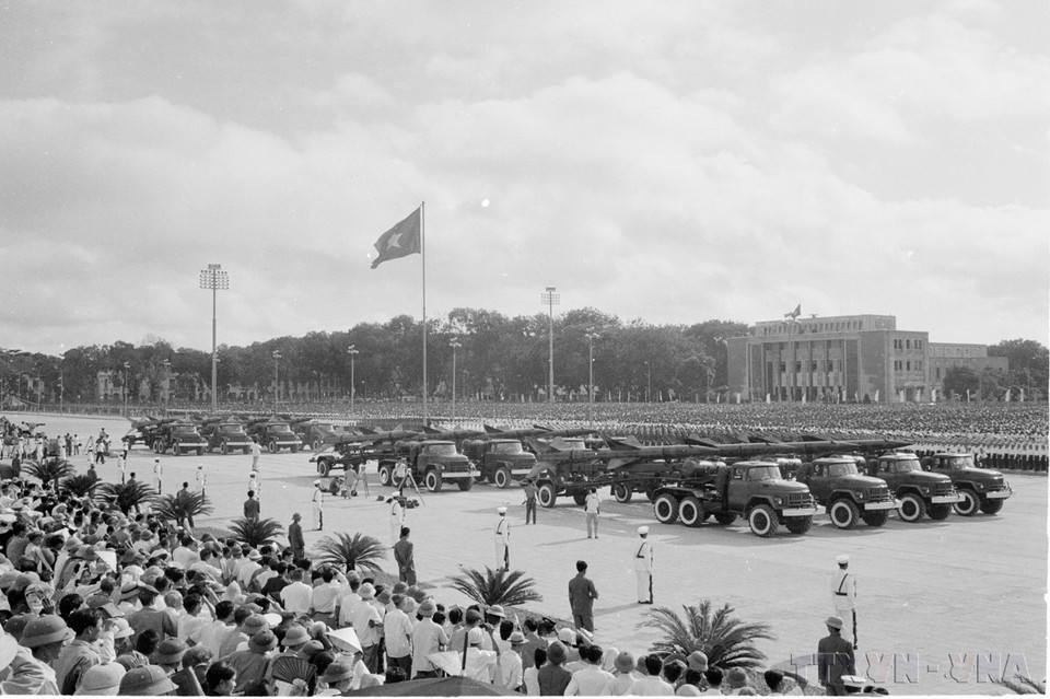 ১৯৭৫ সালের ২রা সেপ্টেম্বর, গণতান্ত্রিক প্রজাতন্ত্র ভিয়েতনামের প্রতিষ্ঠার ৩০তম বার্ষিকী উদযাপনের জন্য রাজধানীতে জনগণের সশস্ত্র বাহিনী এবং কয়েক হাজার মানুষ একটি সমাবেশ, কুচকাওয়াজ এবং মিছিলে অংশগ্রহণ করে। ছবি: ভিএনএ