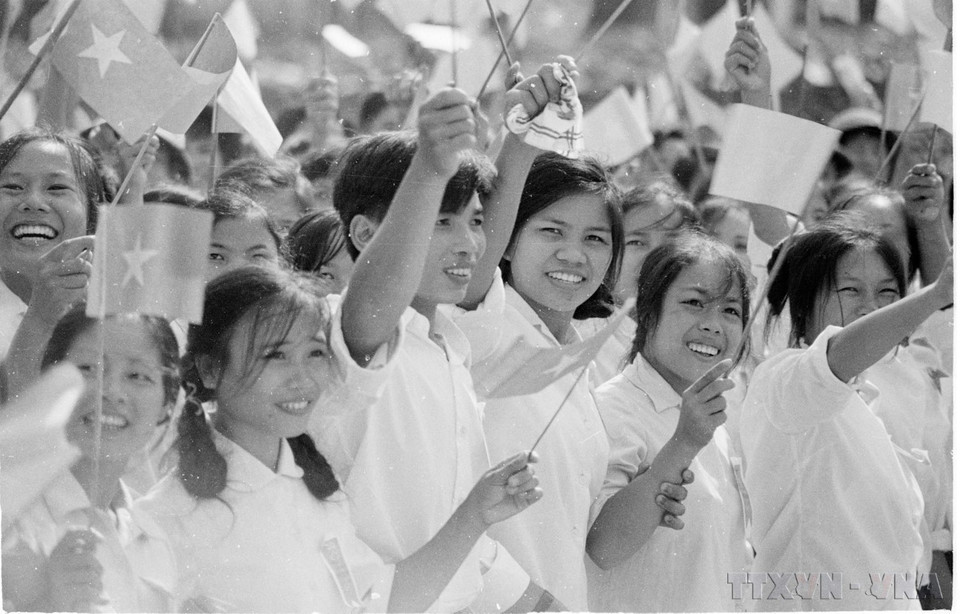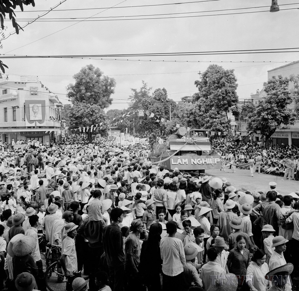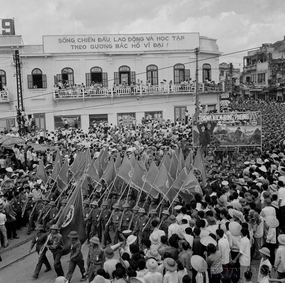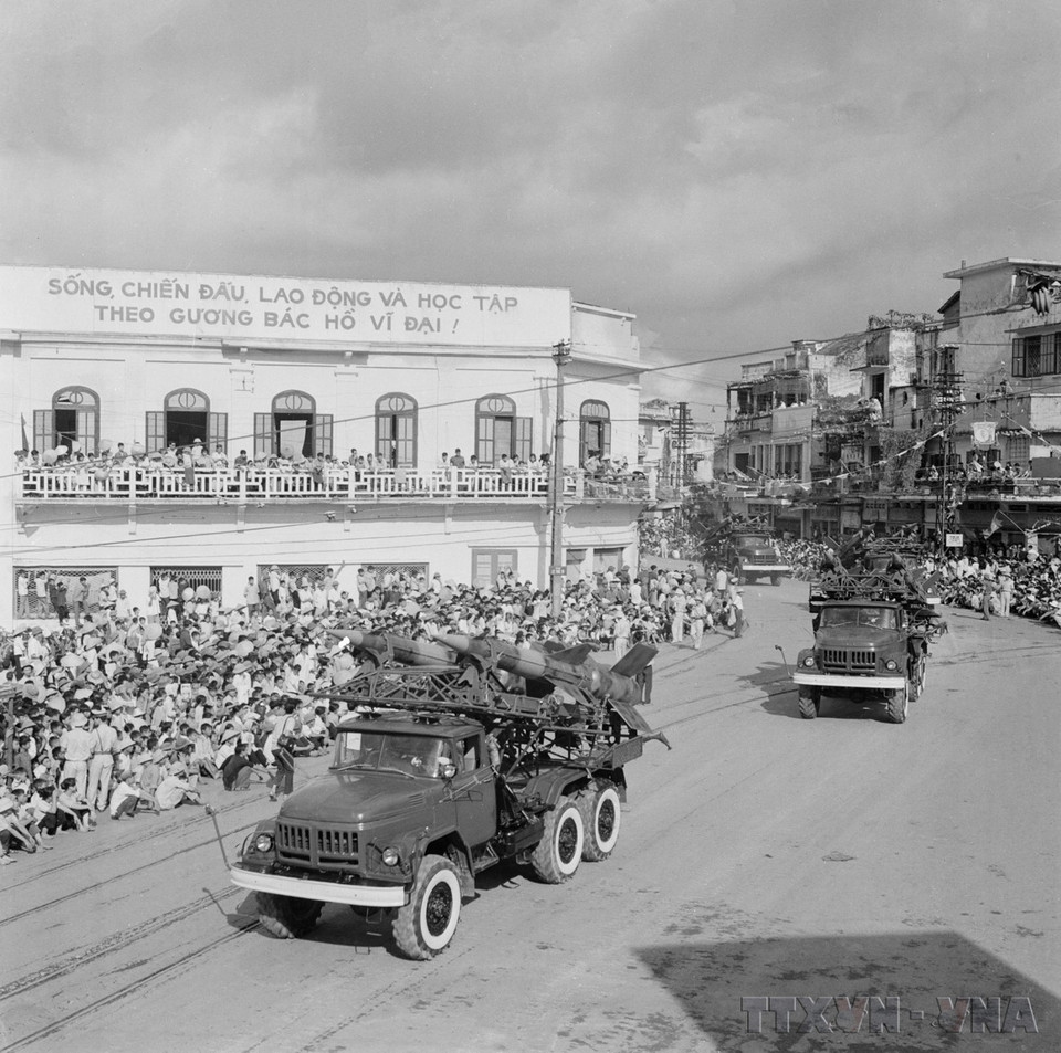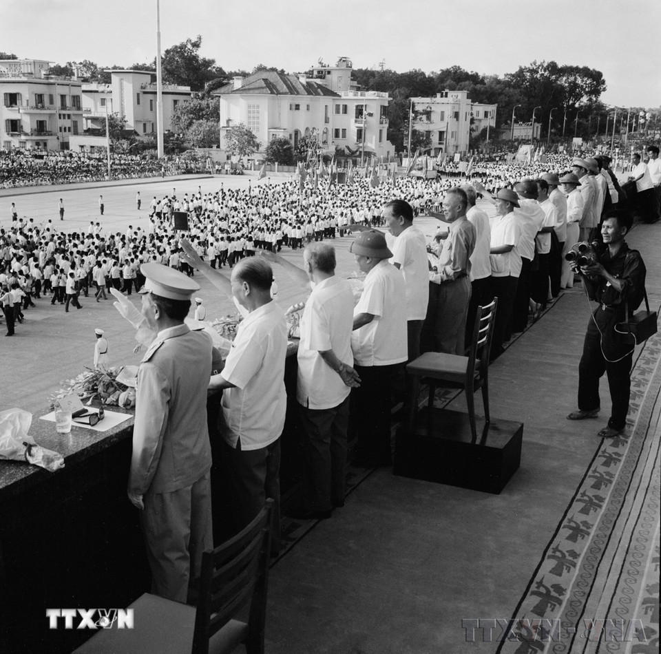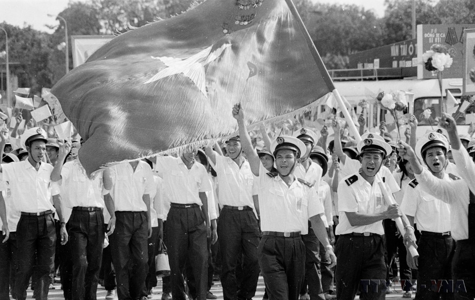 ১৯৭৫ সালের ২রা সেপ্টেম্বর, গণতান্ত্রিক প্রজাতন্ত্র ভিয়েতনামের প্রতিষ্ঠার ৩০তম বার্ষিকী উদযাপনের জন্য রাজধানীতে জনগণের সশস্ত্র বাহিনী এবং কয়েক হাজার মানুষ একটি সমাবেশ, কুচকাওয়াজ এবং মিছিলে অংশগ্রহণ করে। ছবি: ভিএনএ