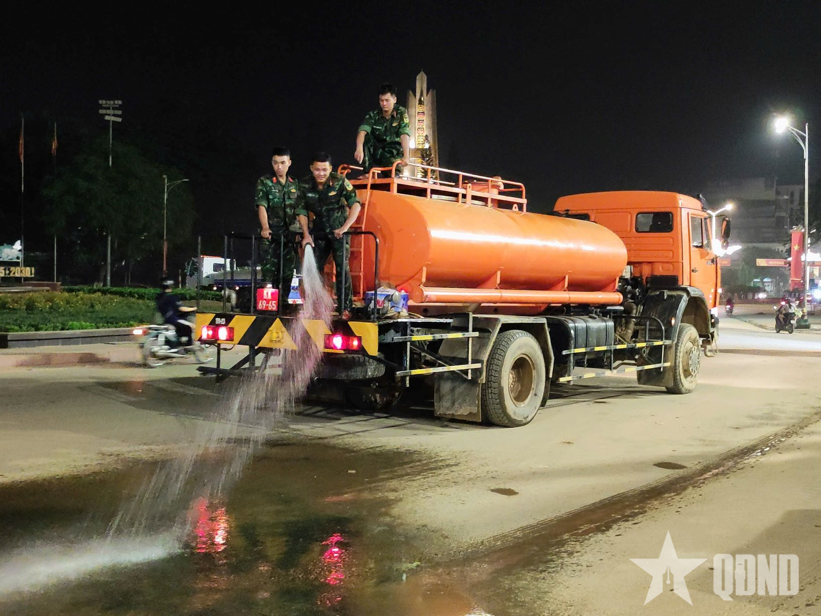 ব্রিগেড ৮৬ (কেমিক্যাল কর্পস)-এর বিশেষ যানবাহন ফান দিন ফুং ওয়ার্ডে জীবাণুনাশক স্প্রে করছে। |