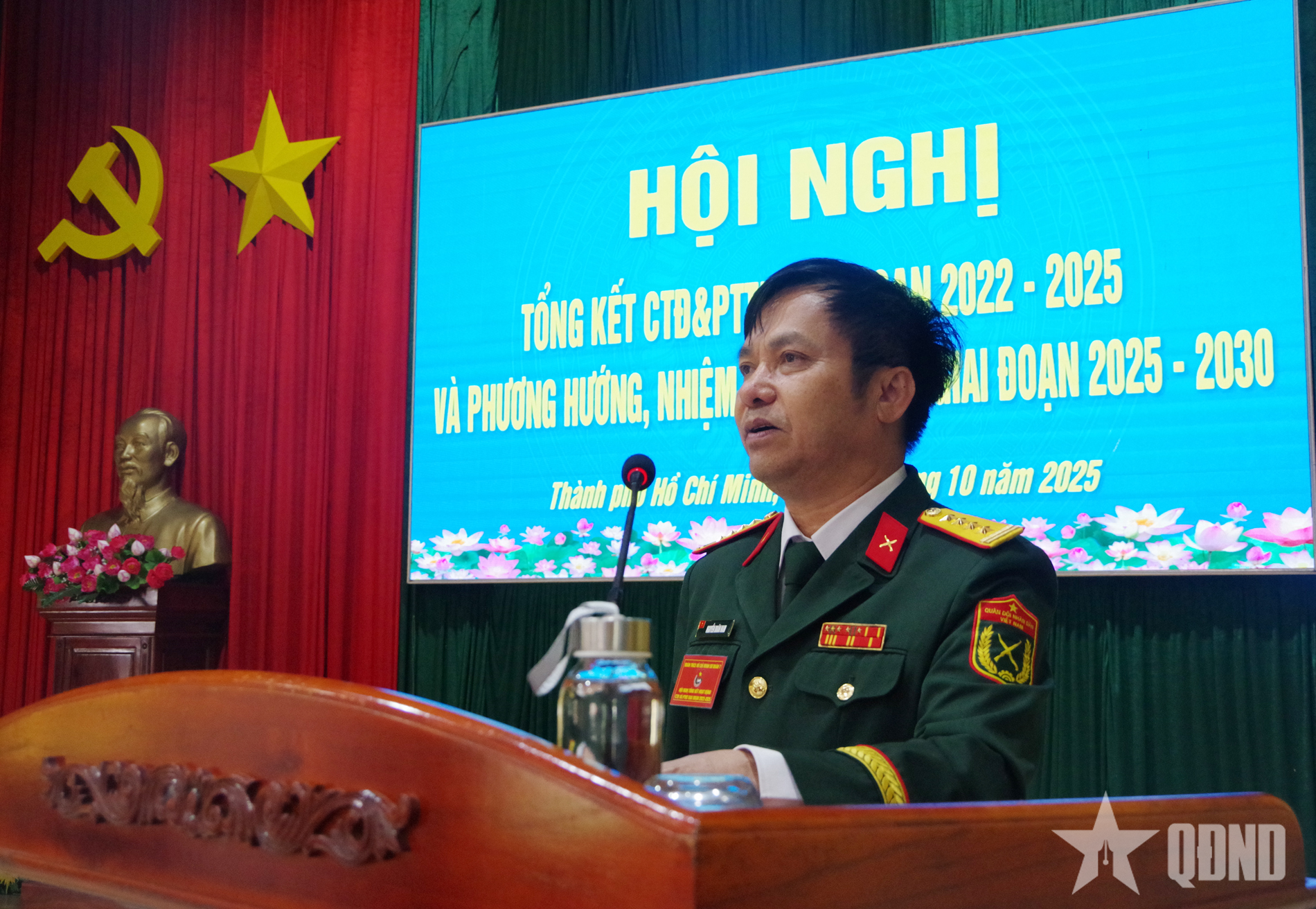 পার্টির সম্পাদক এবং ডিভিশন ৭-এর রাজনৈতিক কমিশনার কর্নেল নগুয়েন দোয়ান নাম ইউনিয়ন সদস্য এবং তরুণদের উৎসাহিত করার জন্য একটি বক্তৃতা দেন। |