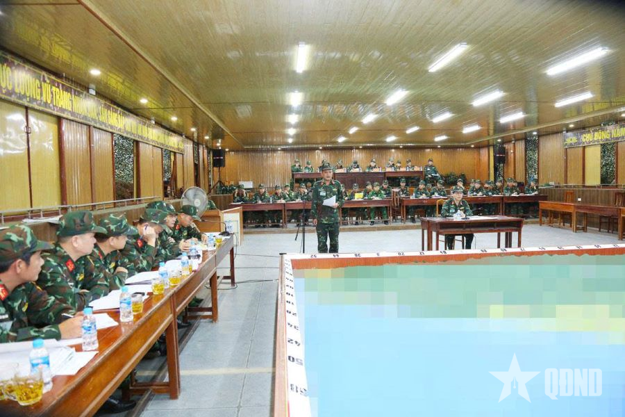 Quang cảnh khung tập tổ chức Hội nghị thông qua quyết tâm tác chiến phòng thủ (điều chỉnh) và ra nghị quyết lãnh đạo nhiệm vụ tác chiến phòng thủ. |