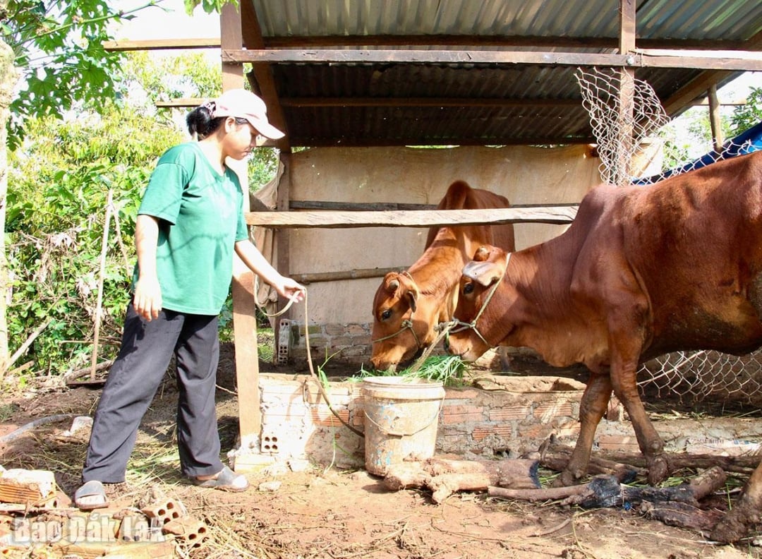 Chị H Duyn Niê là một trong những hộ nghèo ở buôn Trăp được thụ hưởng chương trình hỗ trợ sinh kế. Năm 2023, chị được cấp bò giống và vay vốn ưu đãi từ Ngân hàng Chính sách xã hội. Chị đã liên kết với một số hộ khác để gom bò thành đàn lớn, thuận lợi cho việc chăm sóc. Chị H Duyn cho hay: “Từ ngày được hỗ trợ con giống và vay vốn, gia đình tôi đã có hướng đi mới. Bò đẻ đều, bán được bê con là có khoản tích lũy”.