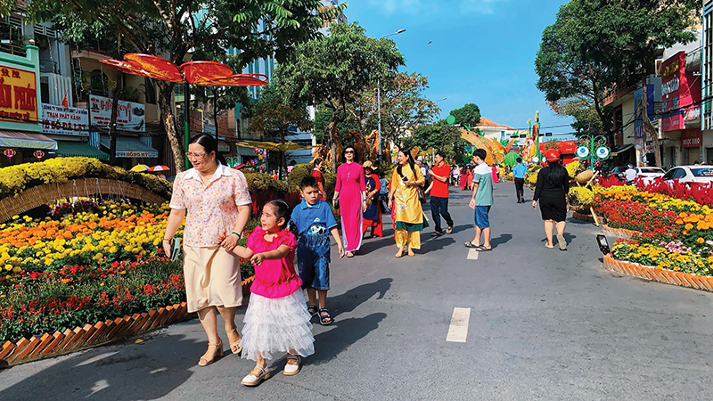 Đường hoa nghệ thuật trong chuỗi các hoạt động mừng Đảng - mừng Xuân của TP Cần Thơ là điểm vui Tết được nhiều du khách gần xa yêu thích, với trung bình hơn 40.000 lượt khách tham quan mỗi ngày.
