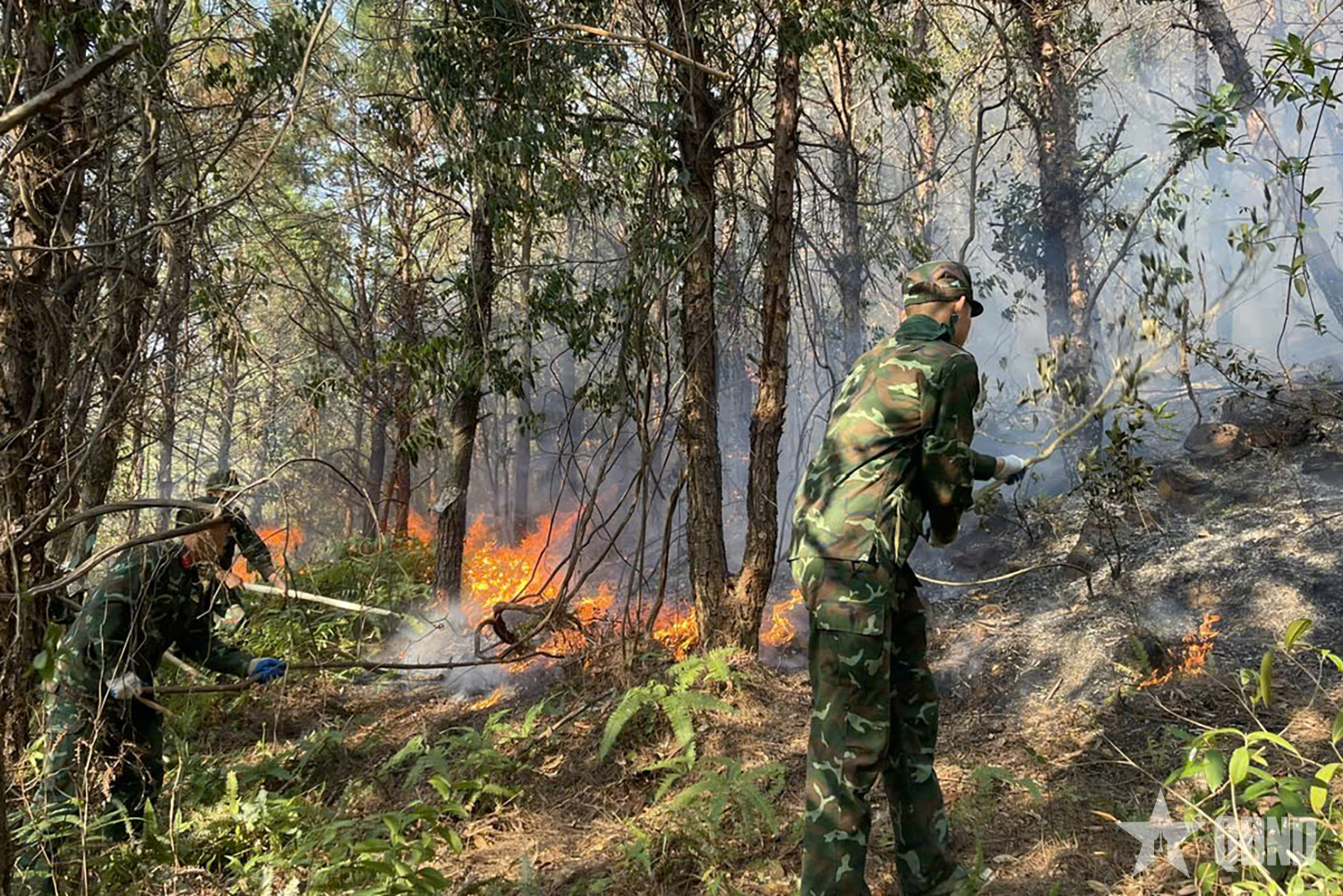 Lực lượng vũ trang tỉnh Quảng Ninh tham gia chữa cháy rừng trên địa bàn. |