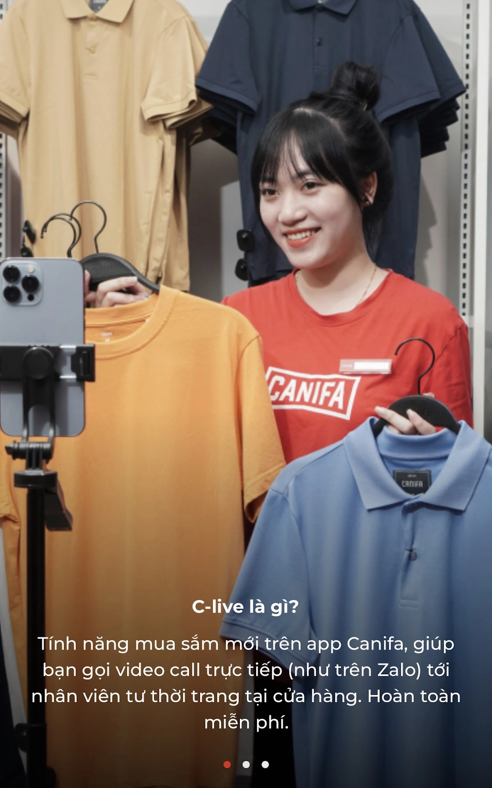 C-LIVE của CANIFA là một tính năng đột phá, tích hợp trên ứng dụng mua sắm trực tuyến CANIFA, mang đến trải nghiệm tương tác độc đáo giữa khách hàng và nhân viên tư vấn tại cửa hàng qua video call.