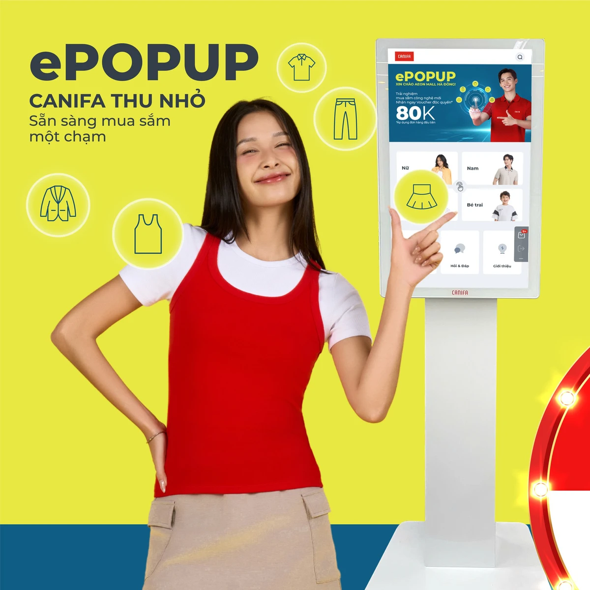 Trong năm qua, CANIFA cũng đã trình làng E-POPUP - một thiết bị mua sắm tự động được thiết kế với màn hình cảm ứng lớn và sắc nét, giúp người dùng có thể dễ dàng tương tác, duyệt qua hàng ngàn sản phẩm của CANIFA.