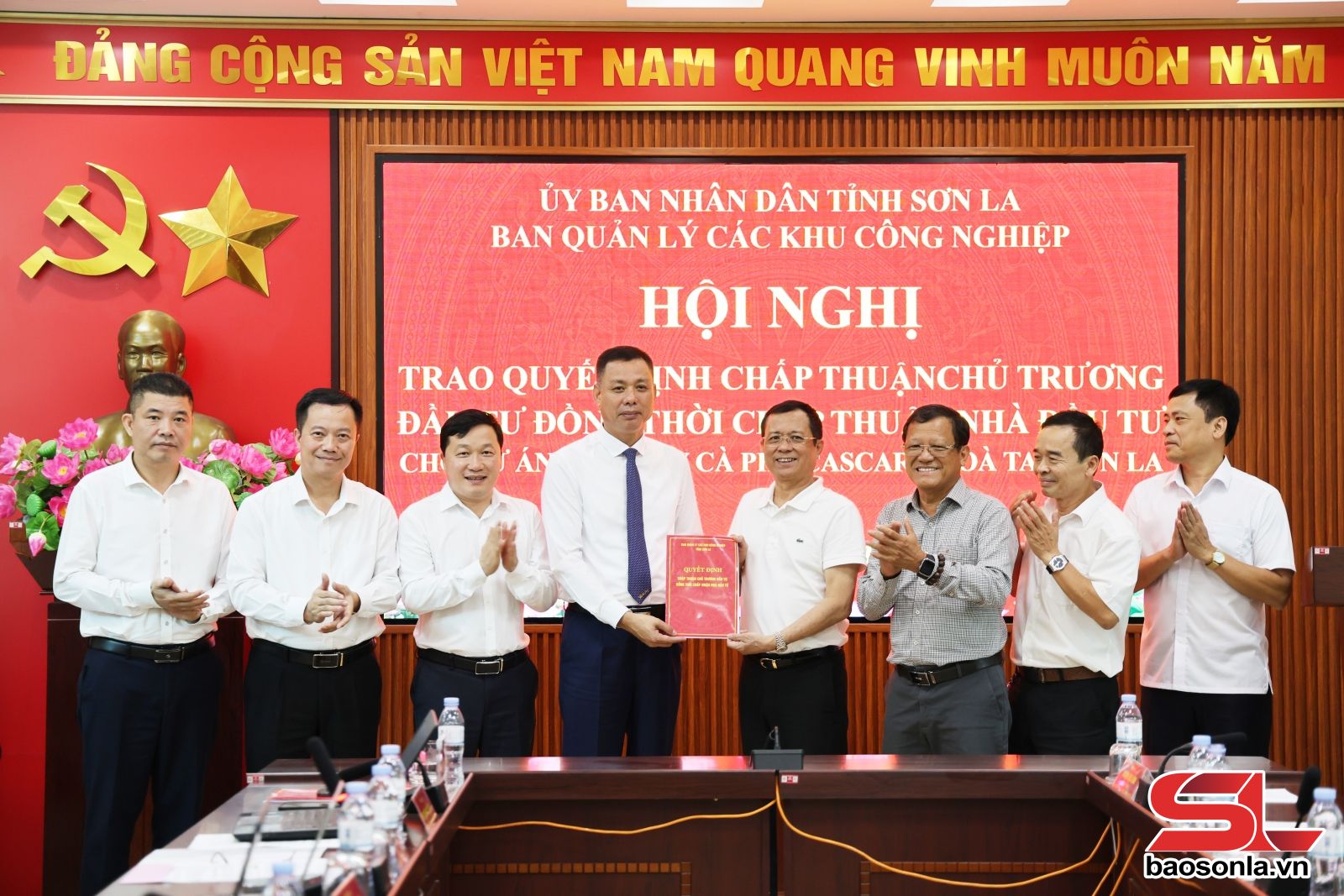 Tại hội nghị, Ban Quản lý các khu công nghiệp tỉnh công bố quyết định về việc chấp thuận chủ trương đầu tư, đồng thời chấp thuận nhà đầu tư dự án Nhà máy Cà phê Cascara hòa tan Sơn La. Theo đó, dự án do Công ty CP Cà phê Cascara Sơn La, xã Mai Sơn làm chủ đầu tư, thực hiện tại lô CN5 (SKK 27), Khu công nghiệp Mai Sơn, xã Chiềng Mung.