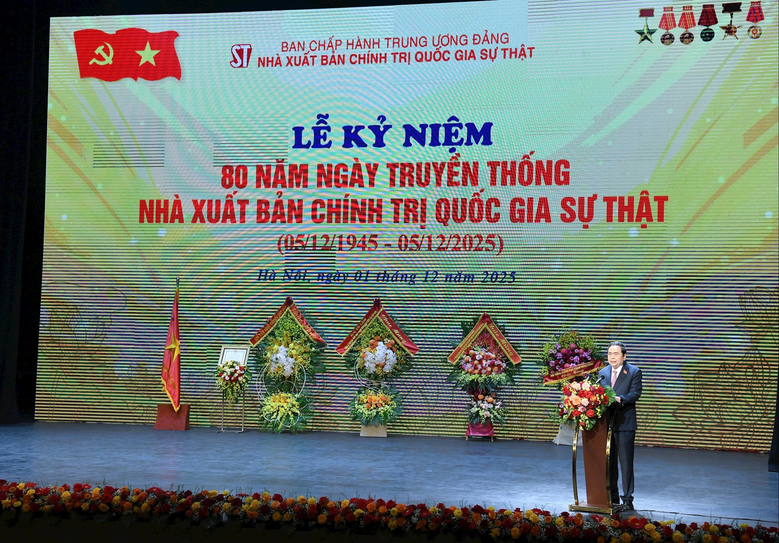 Phát biểu tại Lễ kỷ niệm, Chủ tịch Quốc hội Trần Thanh Mẫn ghi nhận, biểu dương và chúc mừng những thành tựu to lớn mà các thế hệ cán bộ, công chức, viên chức, người lao động Nhà xuất bản Chính trị quốc gia sự thật đã đạt được trong 80 năm qua.