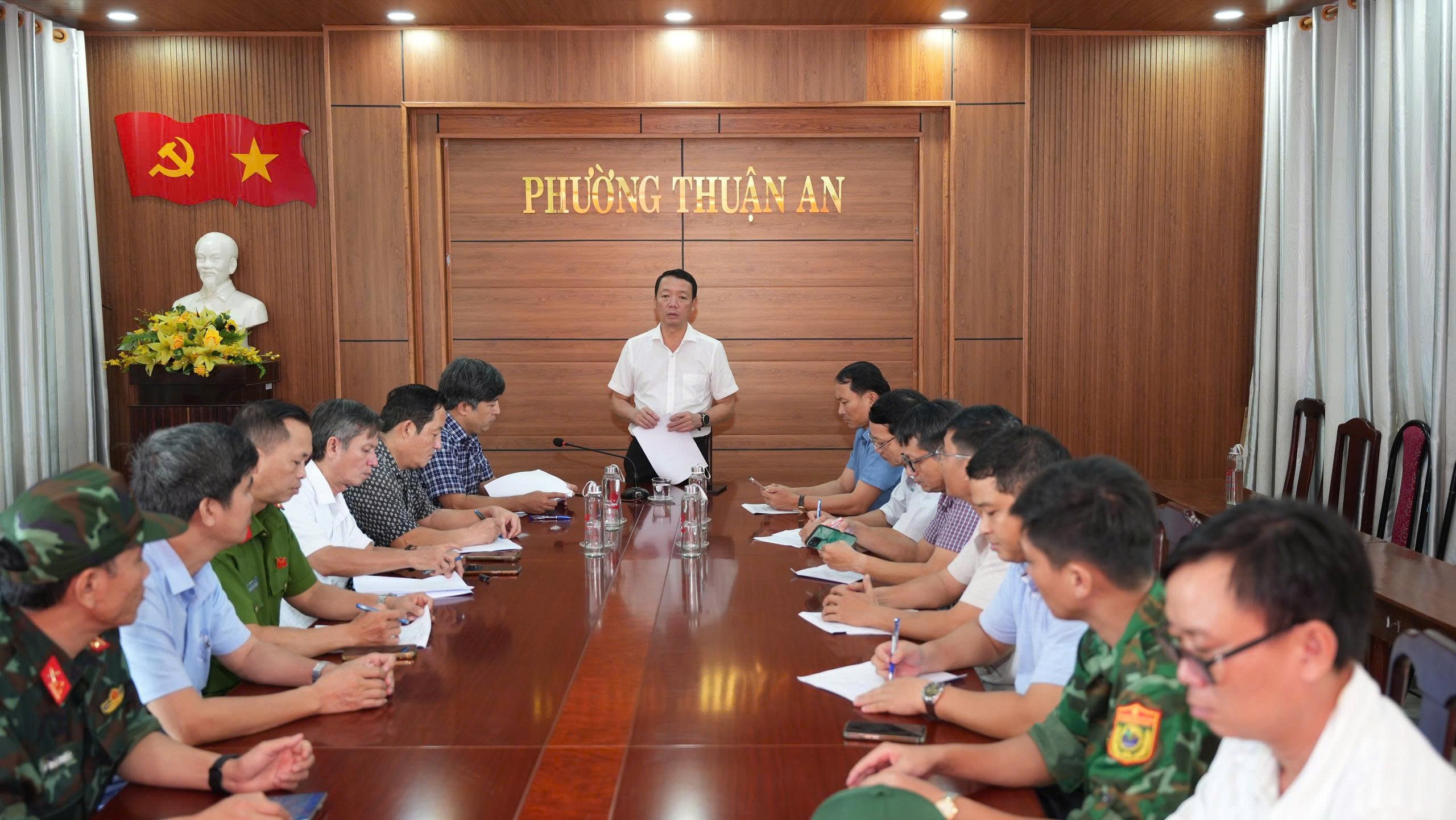 Phát biểu tại buổi làm việc, Chủ tịch UBND thành phố Phan Thiên Định đánh giá cao tinh thần chủ động, khẩn trương của phường Thuận An trong công tác ứng phó và khắc phục hậu quả mưa lũ, đặc biệt là việc huy động lực lượng tại chỗ để hỗ trợ người dân trong những ngày qua.