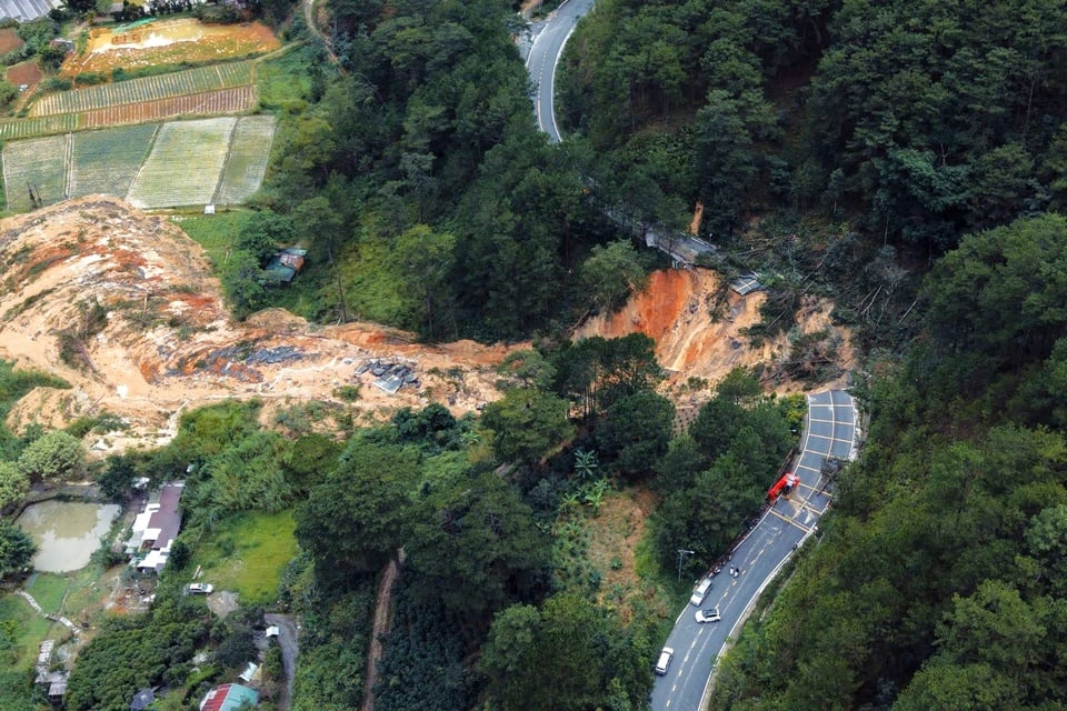 Đèo Mimosa bị chia đôi sau sạt lở ngày 17/11. Ảnh: Minh Hà/Đà Lạt Chạm. |