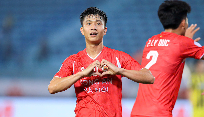 Phan Văn Đức ghi bàn cho Công an Hà Nội. Ảnh: Minh Dân