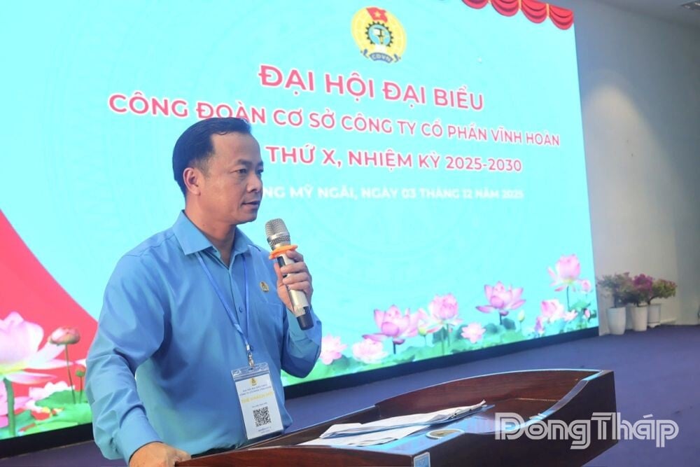 Phát biểu tại Đại hội, đồng chí Nguyễn Thanh Tuấn, Phó Chủ tịch LĐLĐ tỉnh Đồng Tháp ghi nhận và đánh giá cao những thành tích nổi bật của BCH CĐCS Công ty đạt được trong nhiệm kỳ qua, đặc biệt là vai trò tích cực trong bảo vệ quyền lợi NLĐ, tổ chức đối thoại, giám sát chế độ chính sách và chăm lo đời sống vật chất, tinh thần cho đoàn viên.