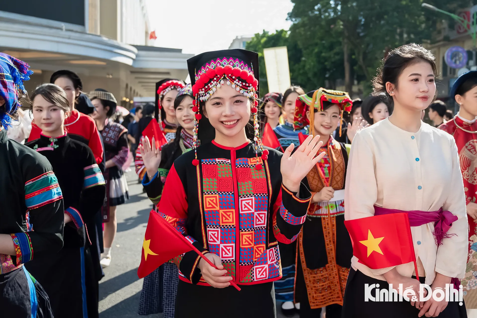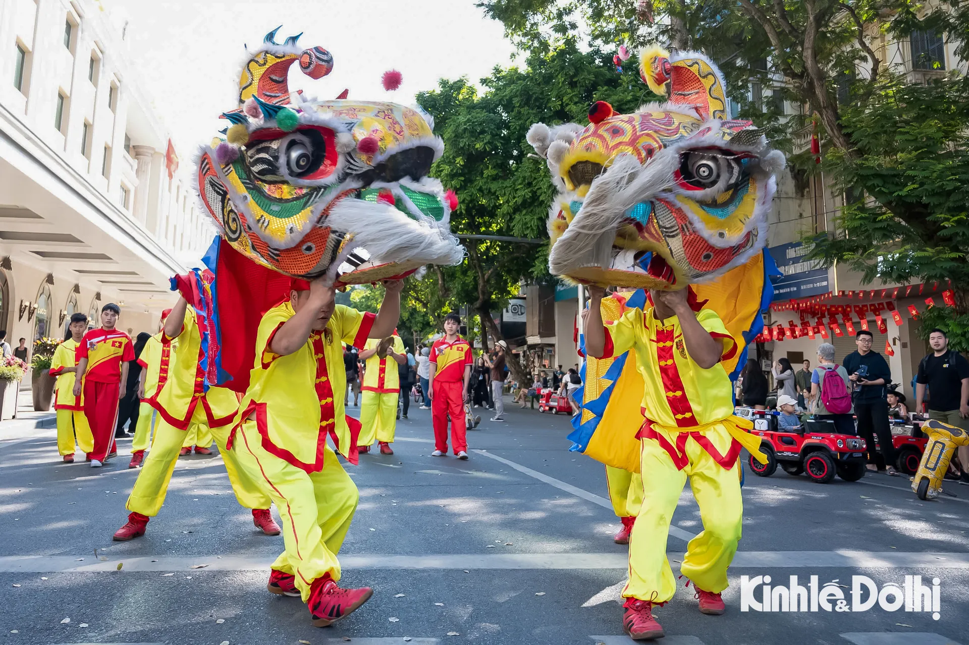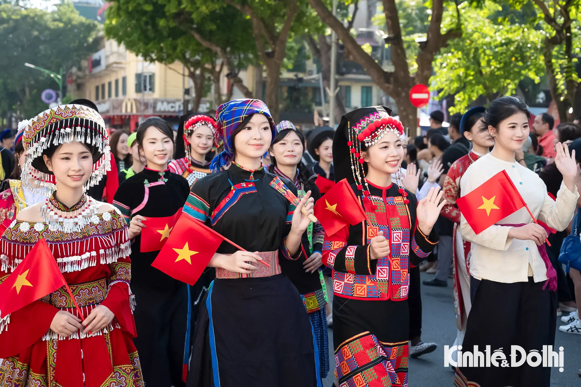 Barevný tradiční průvod se procházel ulicemi kolem jezera Hoan Kiem a náměstí Dong Kinh Nghia Thuc a vytvořil tak živý kulturní prostor uprostřed hanojského podzimu.