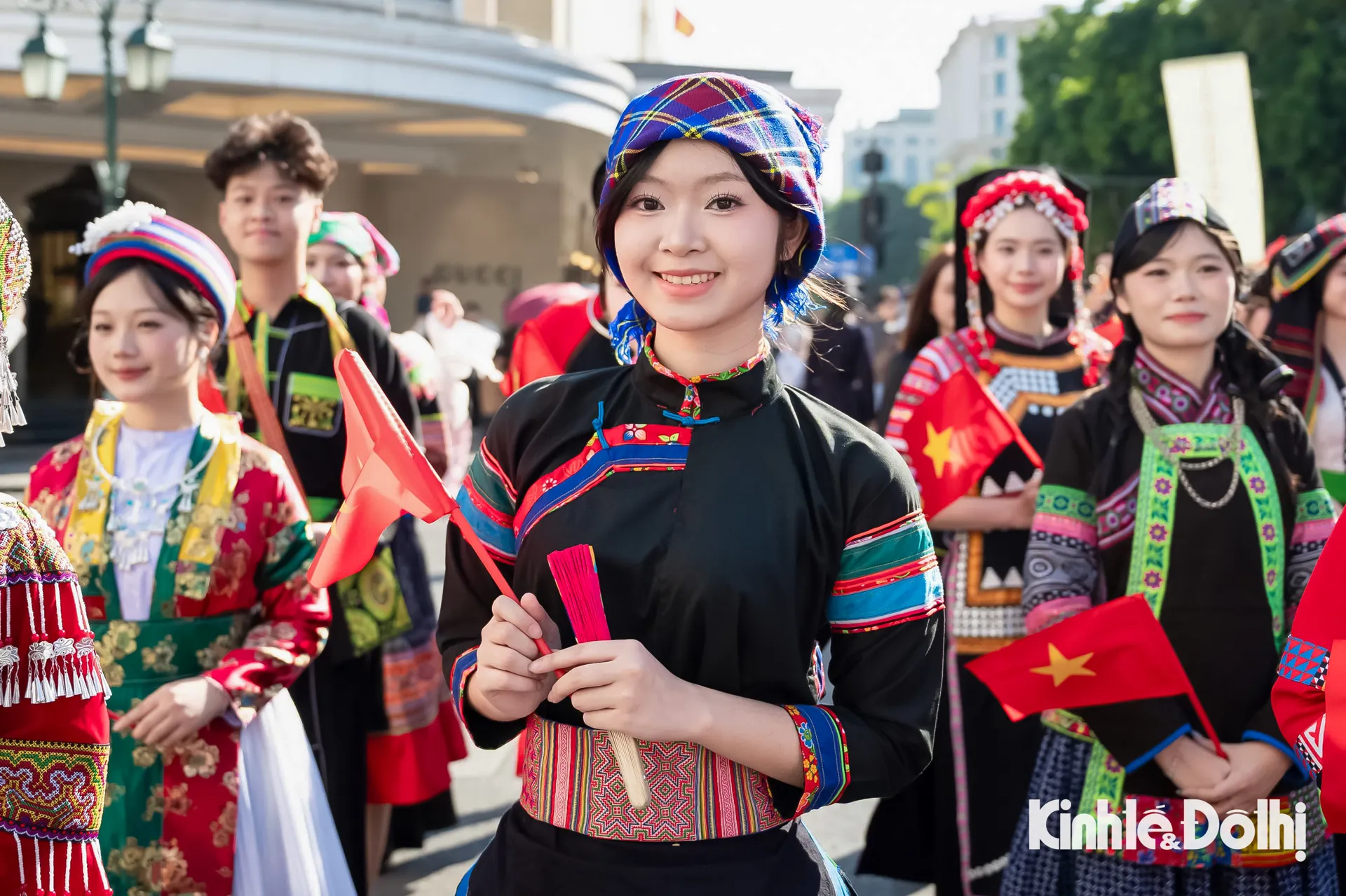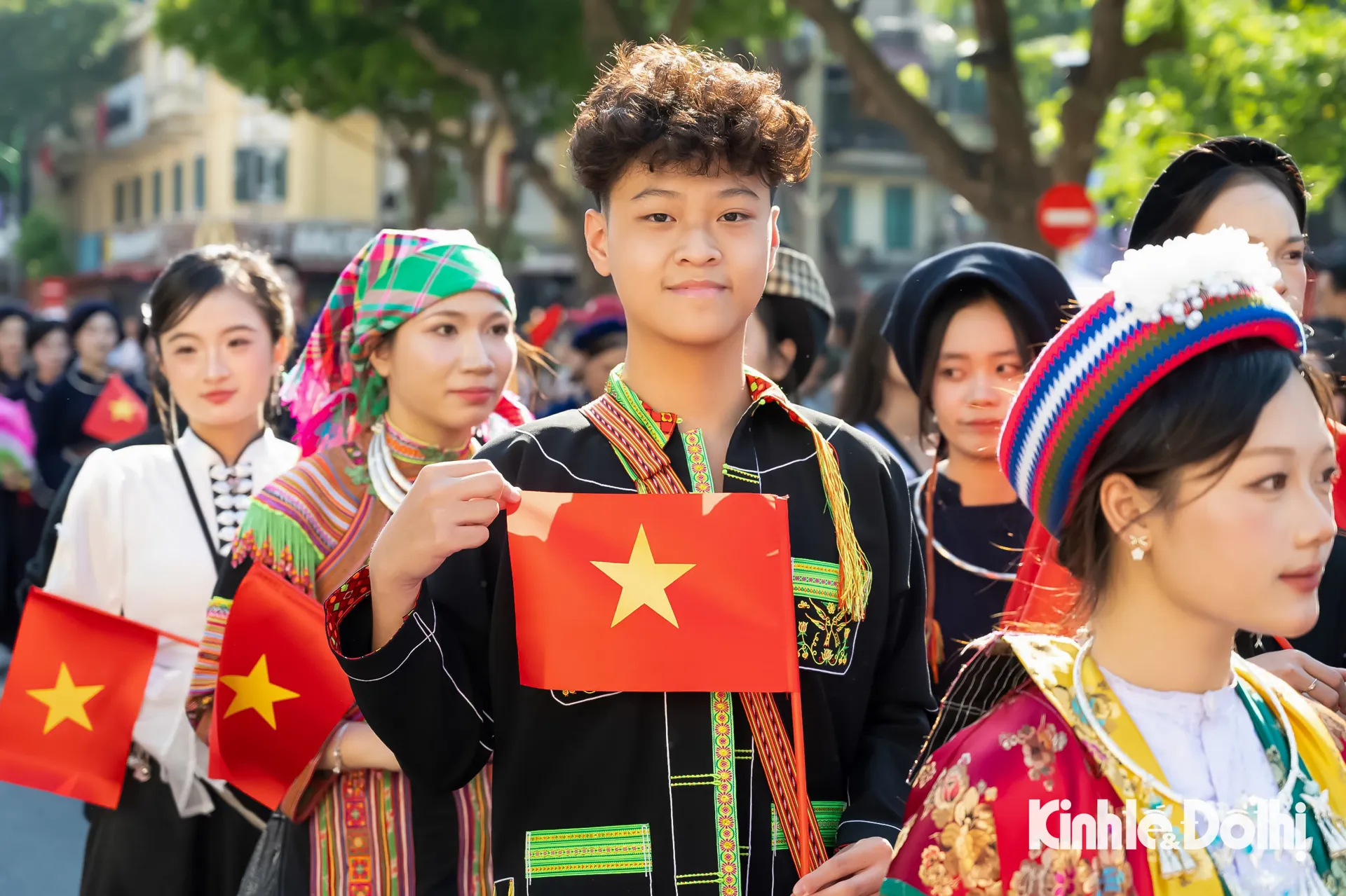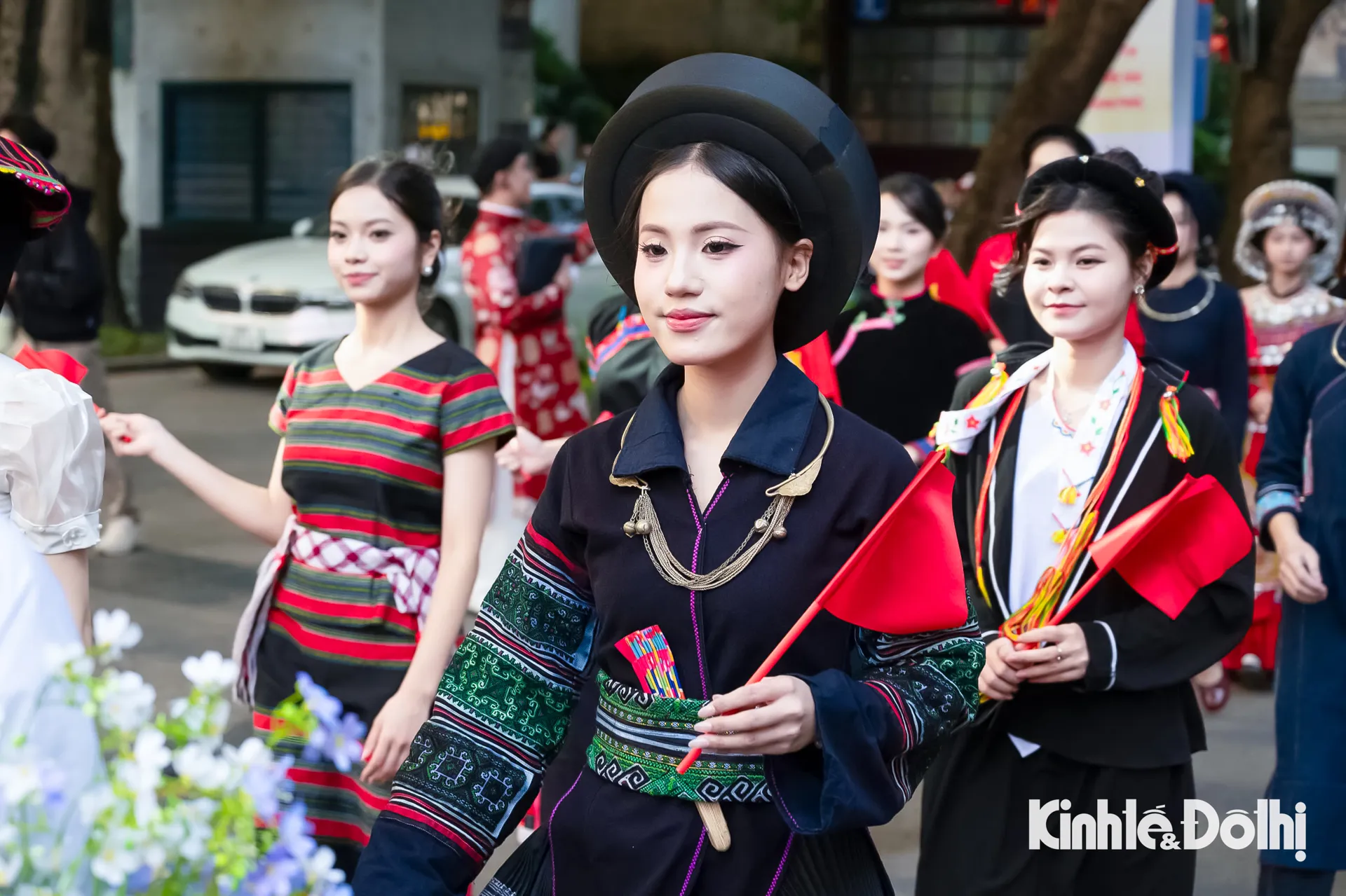 Barevný tradiční průvod se procházel ulicemi kolem jezera Hoan Kiem a náměstí Dong Kinh Nghia Thuc a vytvořil tak živý kulturní prostor uprostřed hanojského podzimu.