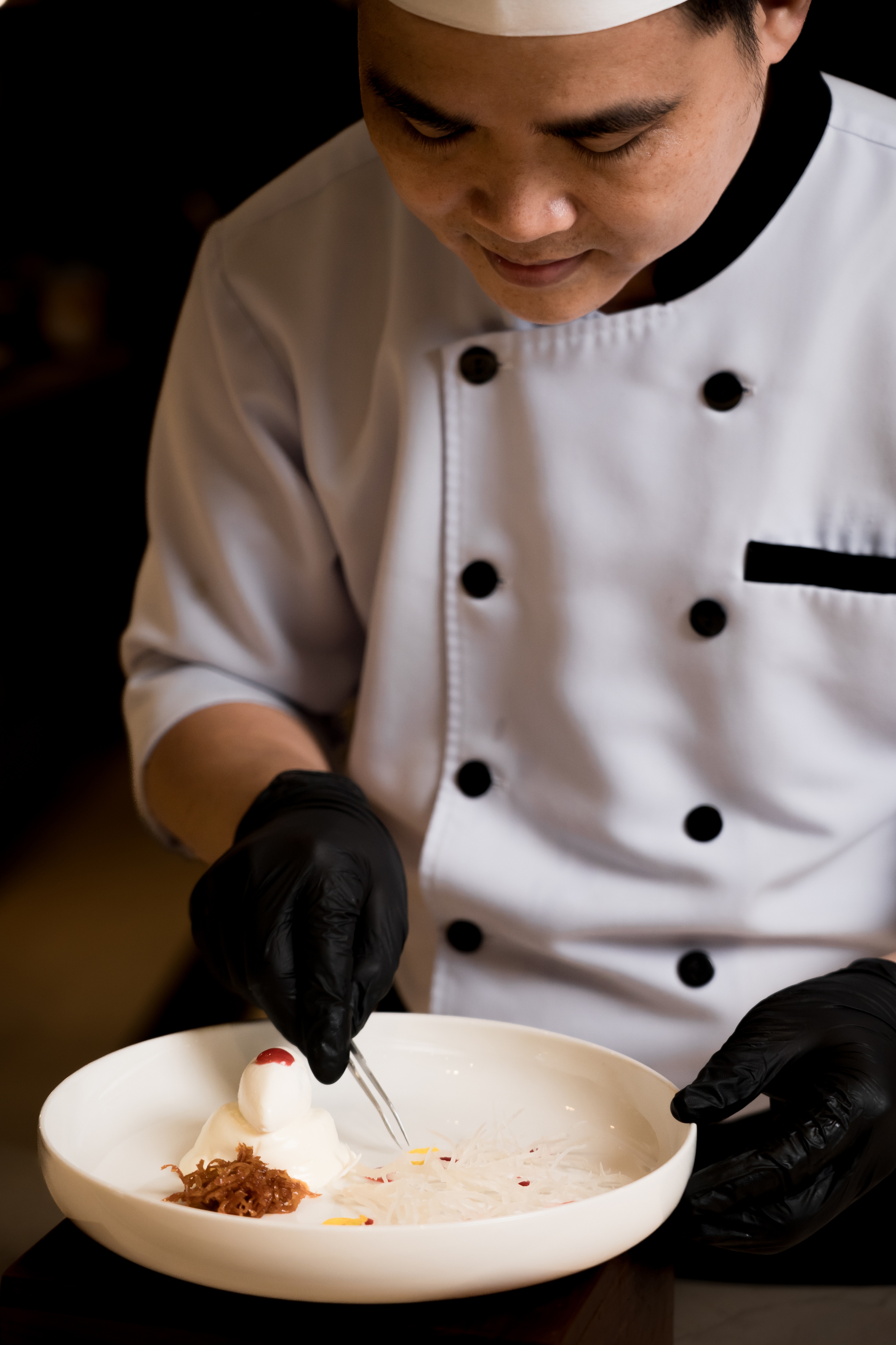 Šéfkuchař Nguyen Hai Hung vytvořil jednoduchou, ale inovativní kombinaci sledě z Phu Quoc a shumai vařených s bohatou omáčkou ze zeleného pepře.
