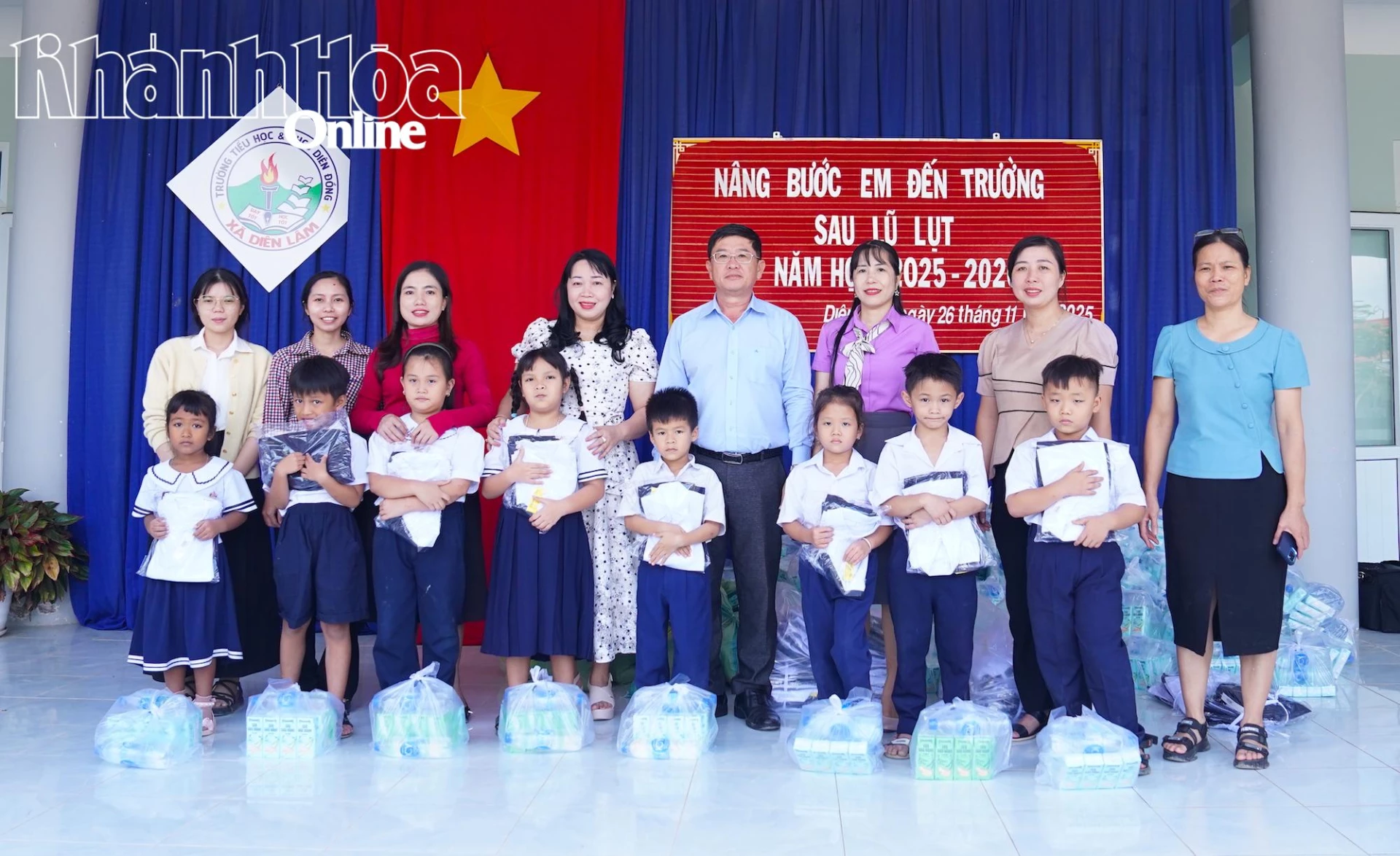Na základní a střední škole Dien Dong delegace předala 100 uniforem žákům 1. až 5. ročníku; 100 dárků, včetně mléka Vinamilk a pitné vody, žákům. Kromě toho delegace předala 20 dárků učitelům postiženým povodněmi (každý dar obsahoval 10 kg rýže a základní potřeby) a 40 pytlů léků na podporu školy v péči o zdraví žáků po přírodní katastrofě.