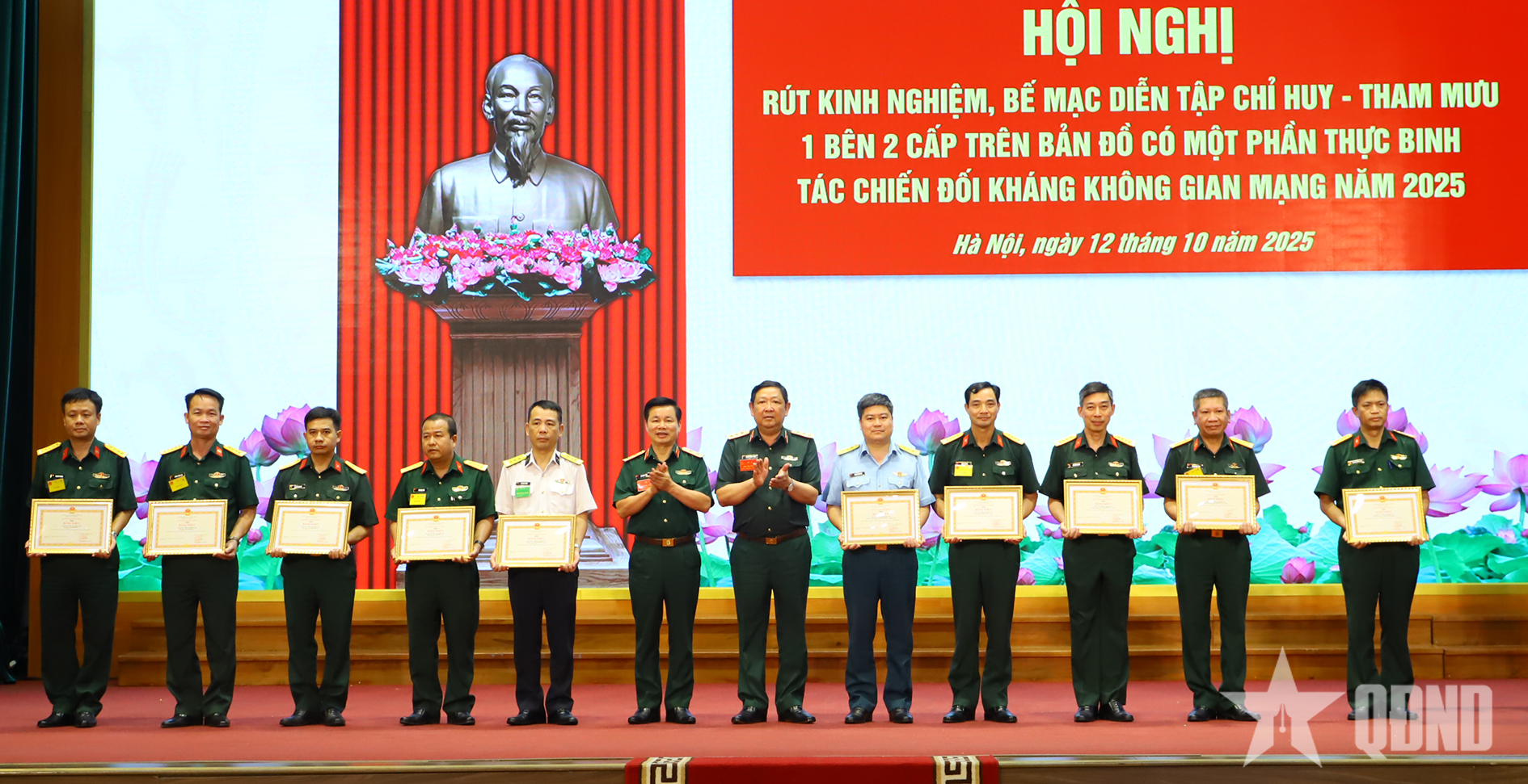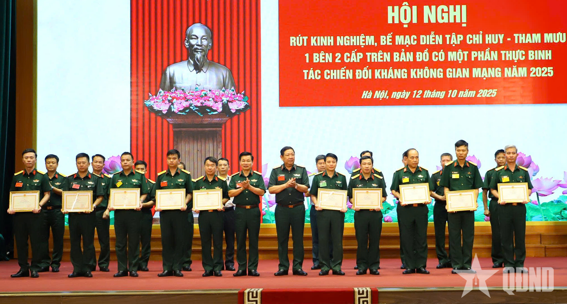 Na závěrečném ceremoniálu cvičení generálporučík Huynh Chien Thang ocenil a poblahopřál agenturám a jednotkám k jejich úspěchům v rámci jednostranného, dvouúrovňového velitelsko-štábního cvičení na mapě části cvičení v kyberprostoru pro Velitelství 86 v roce 2025.