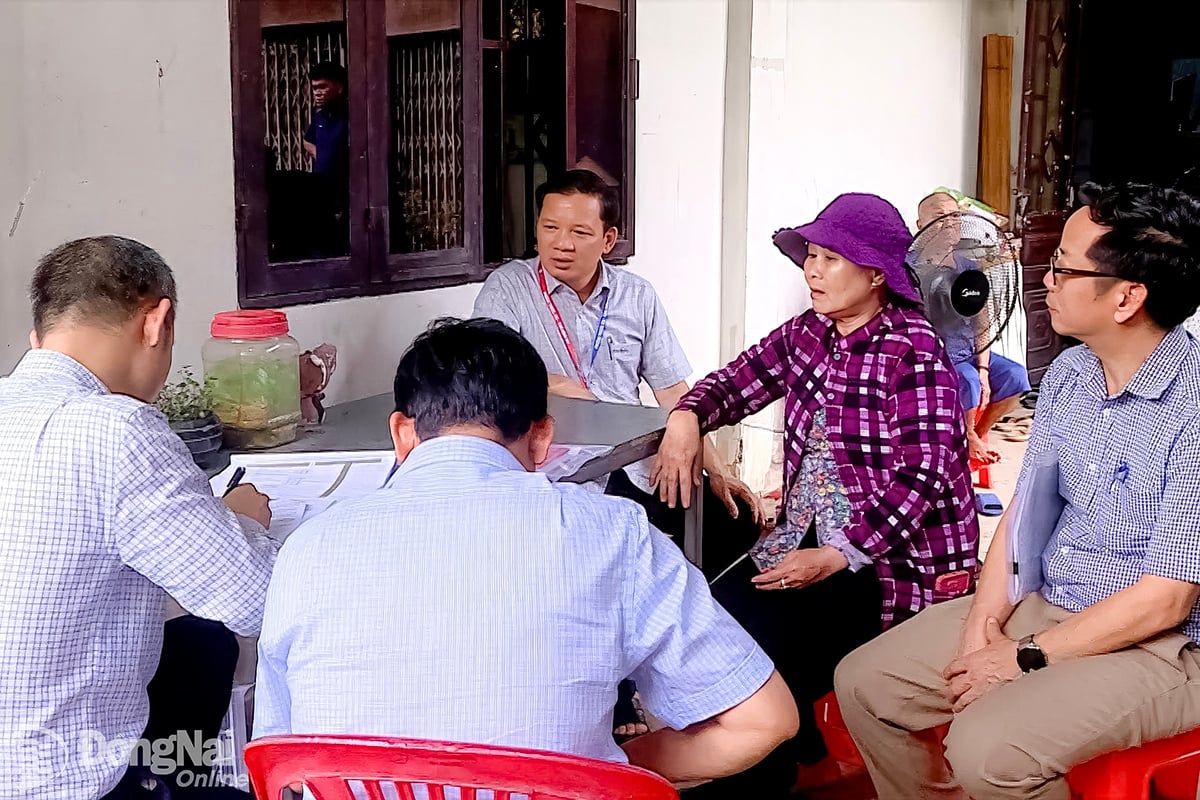 | Úředníci z okresu Phuoc Tan v provincii Dong Nai navštívili domácnosti v rámci projektu infrastruktury pro přesídlovací oblast o rozloze 49,32 ha, aby pochopili myšlenky a touhy lidí. Foto: Phuoc Tho |